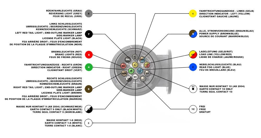Wiltec Anhänger Stecker 13 polig 12V Kunststoff KFZ PKW Wohnwagen Steckdose