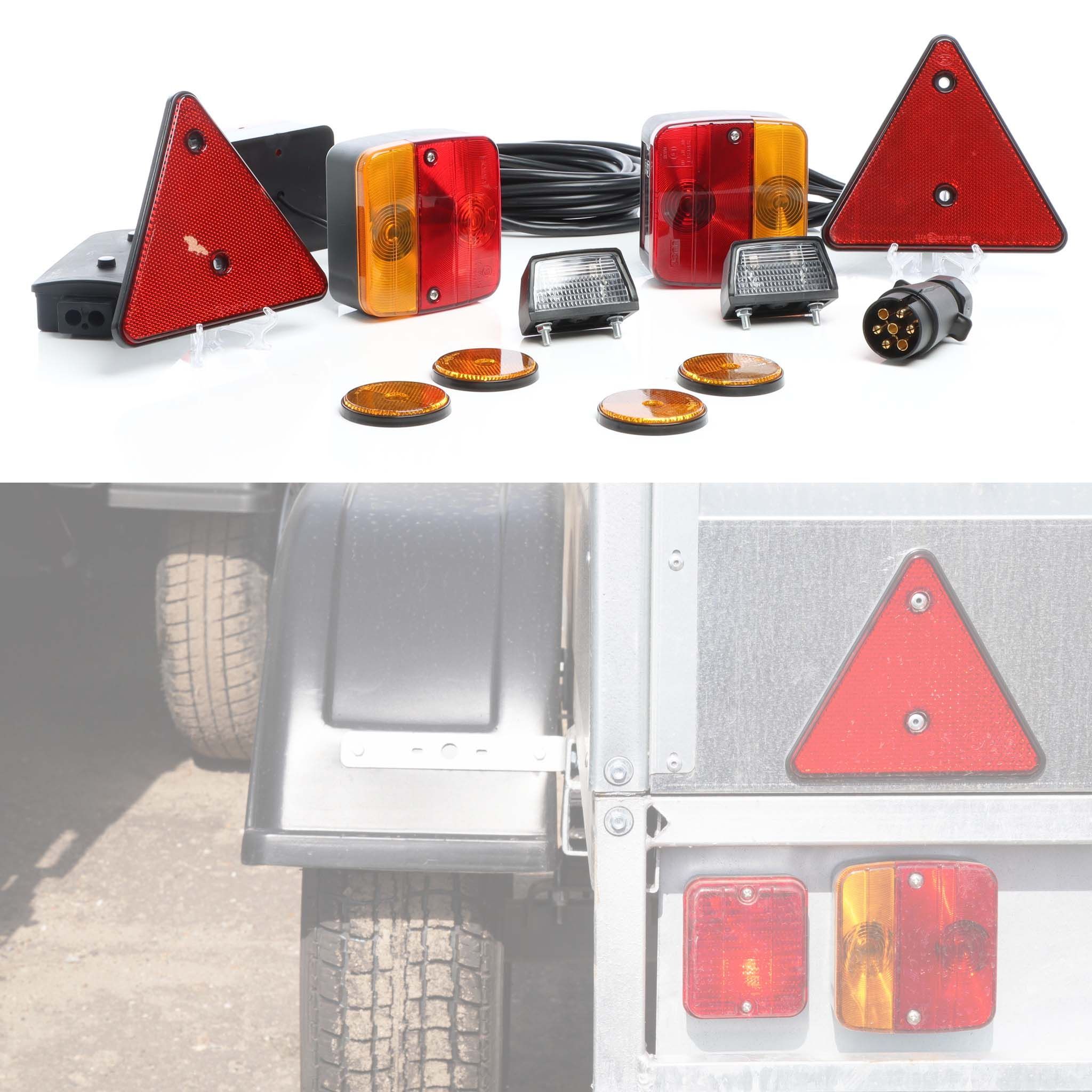 Wiltec Anhängerbeleuchtung Set 7-polig Stecker Anhänger Reflektoren Rückstrahler