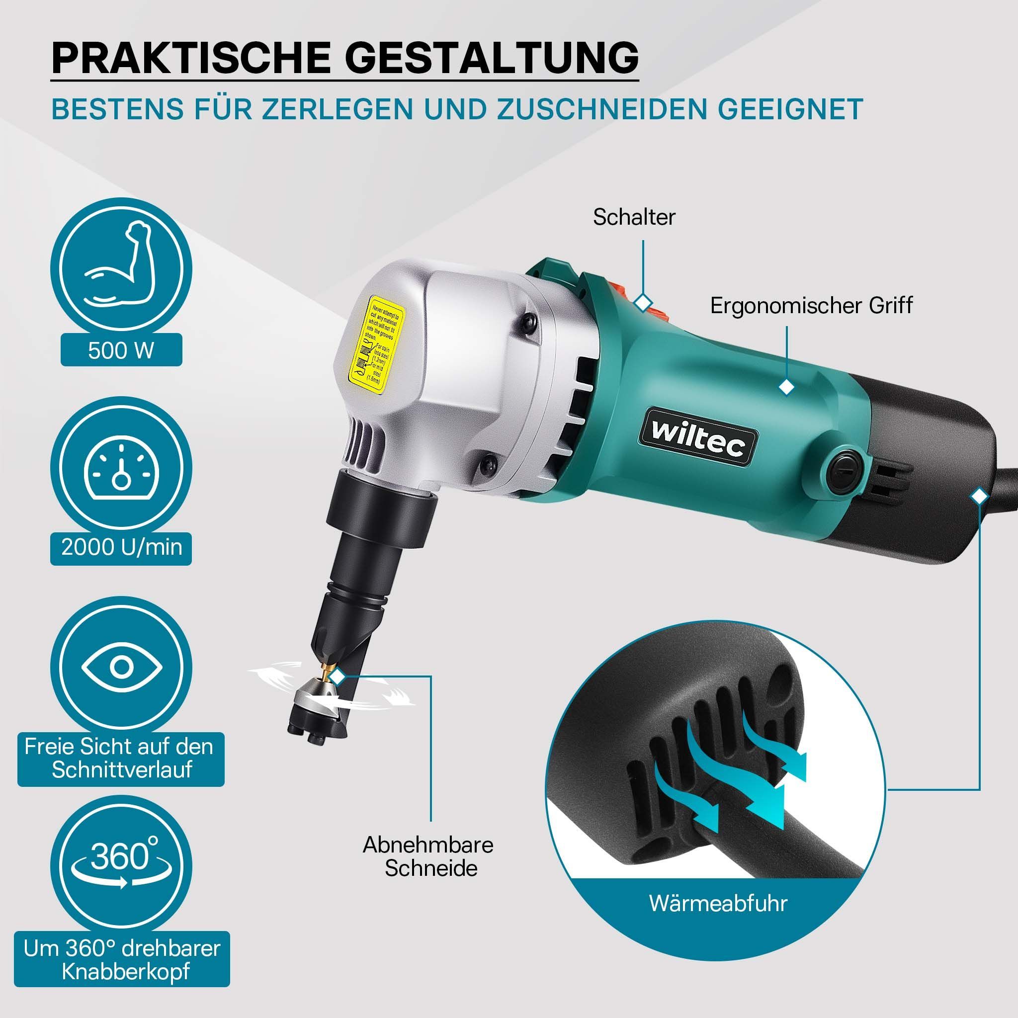 Wiltec Blechknabber 500W 2,5mm 360° Knabber Blechschneider Blechnibbler Nibbler