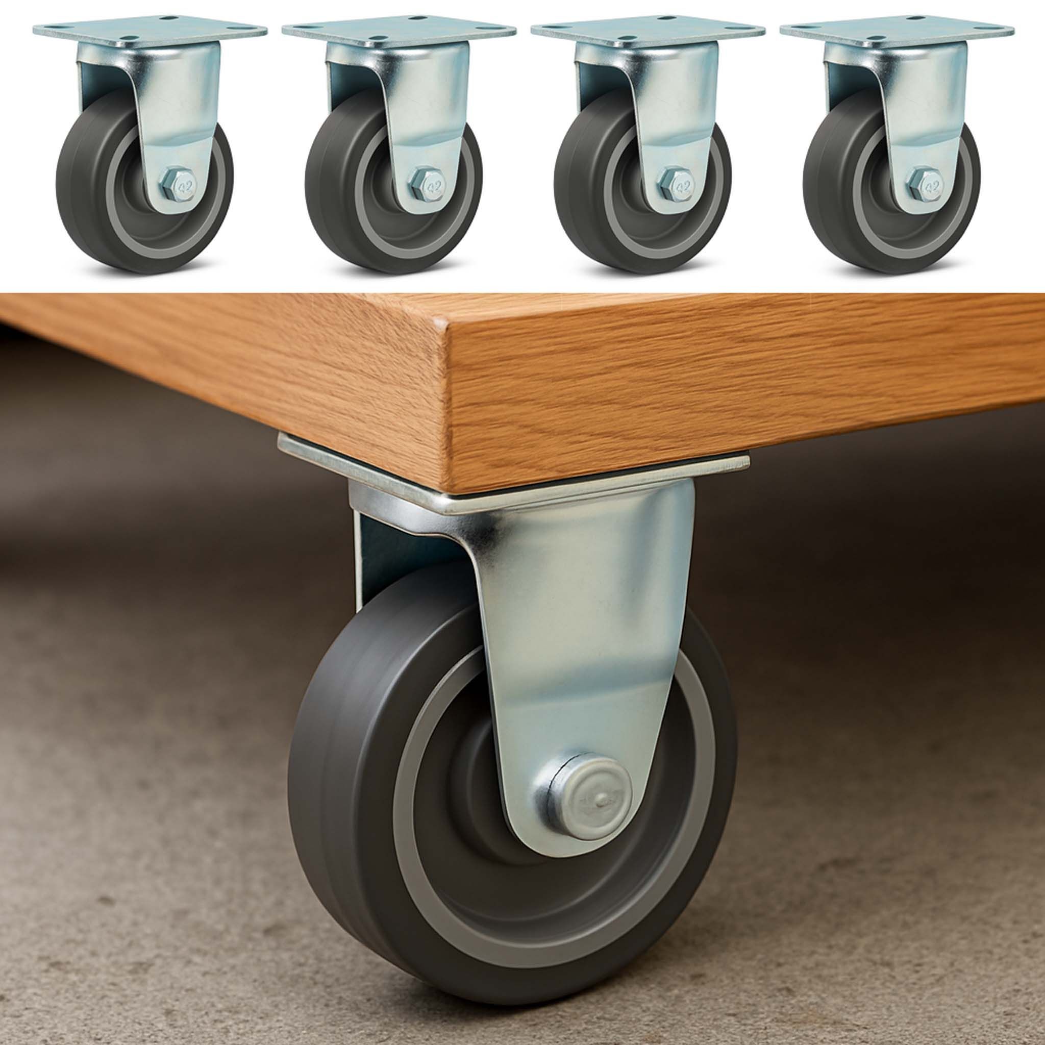 Wiltec Bockrollen Set 4x Transportrolle 75mm Kunststoffrad 75kg Laufrolle