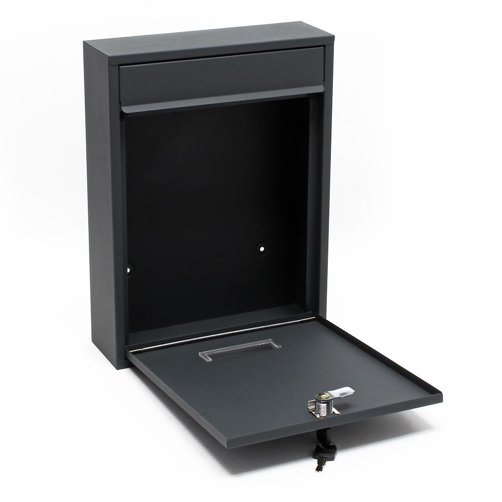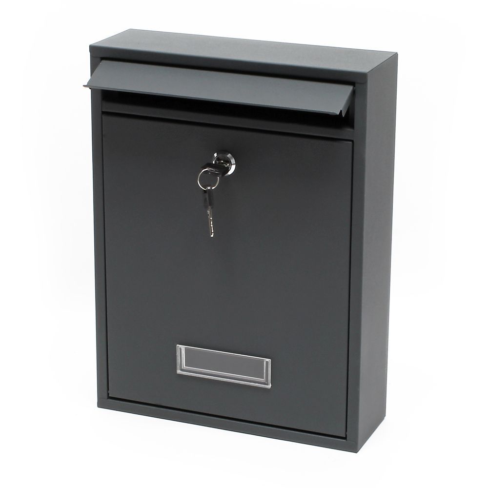Wiltec Briefkasten anthrazit V2 Postkasten Namensschild 2 Schlüssel Stahl