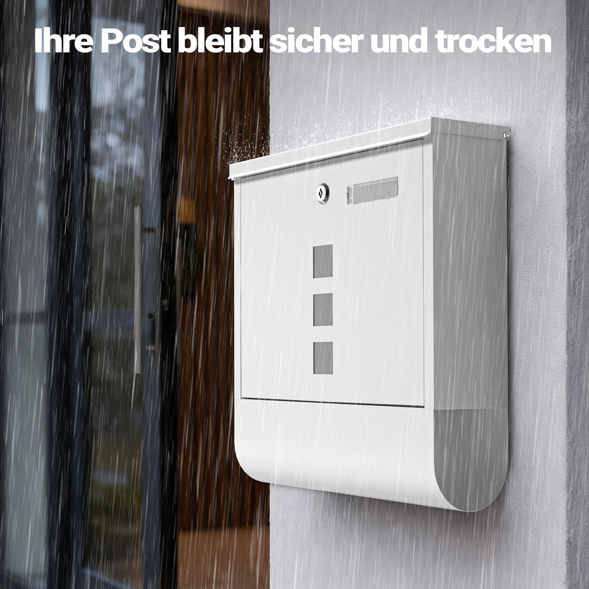 Wiltec Briefkasten weiß 305x95x335mm Schloss Zeitungsfach Wandbriefkasten