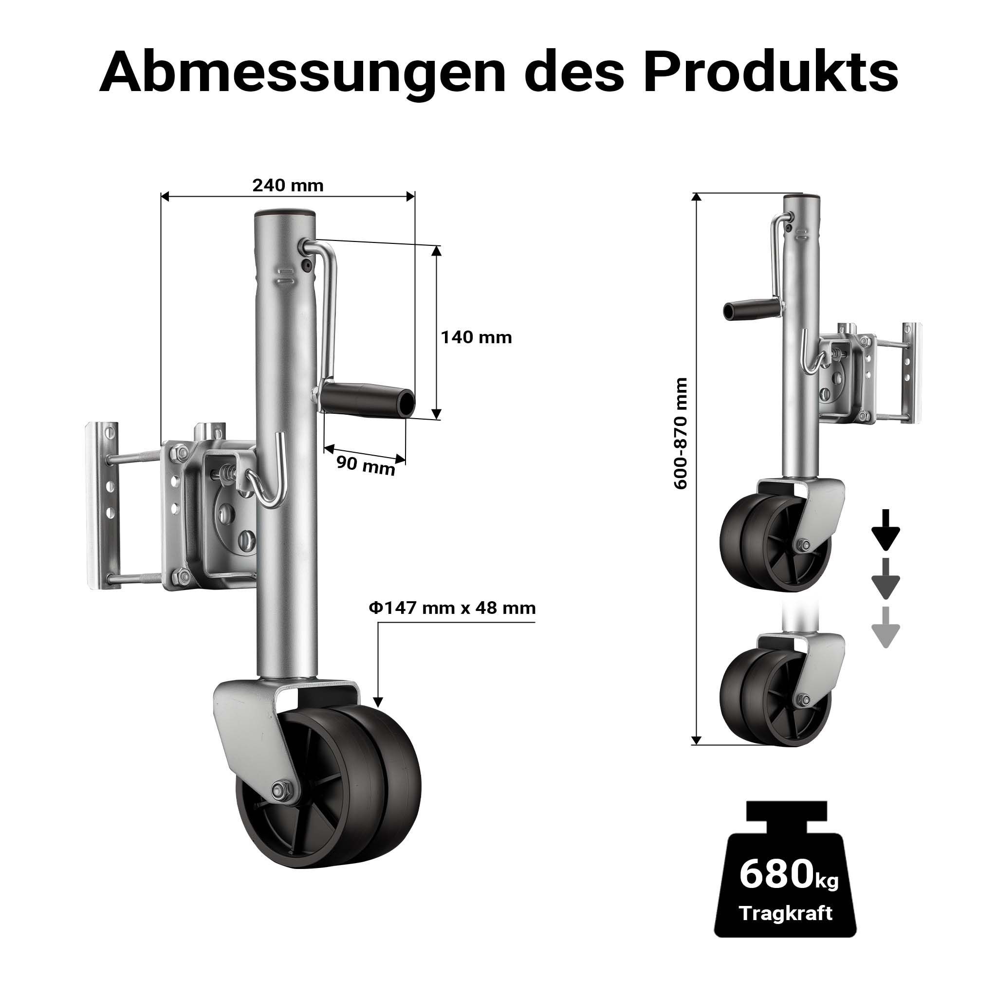 Wiltec Doppelstützrad bis 680kg Schwerlast Anhängerstütze Schwenkarm Bugrad