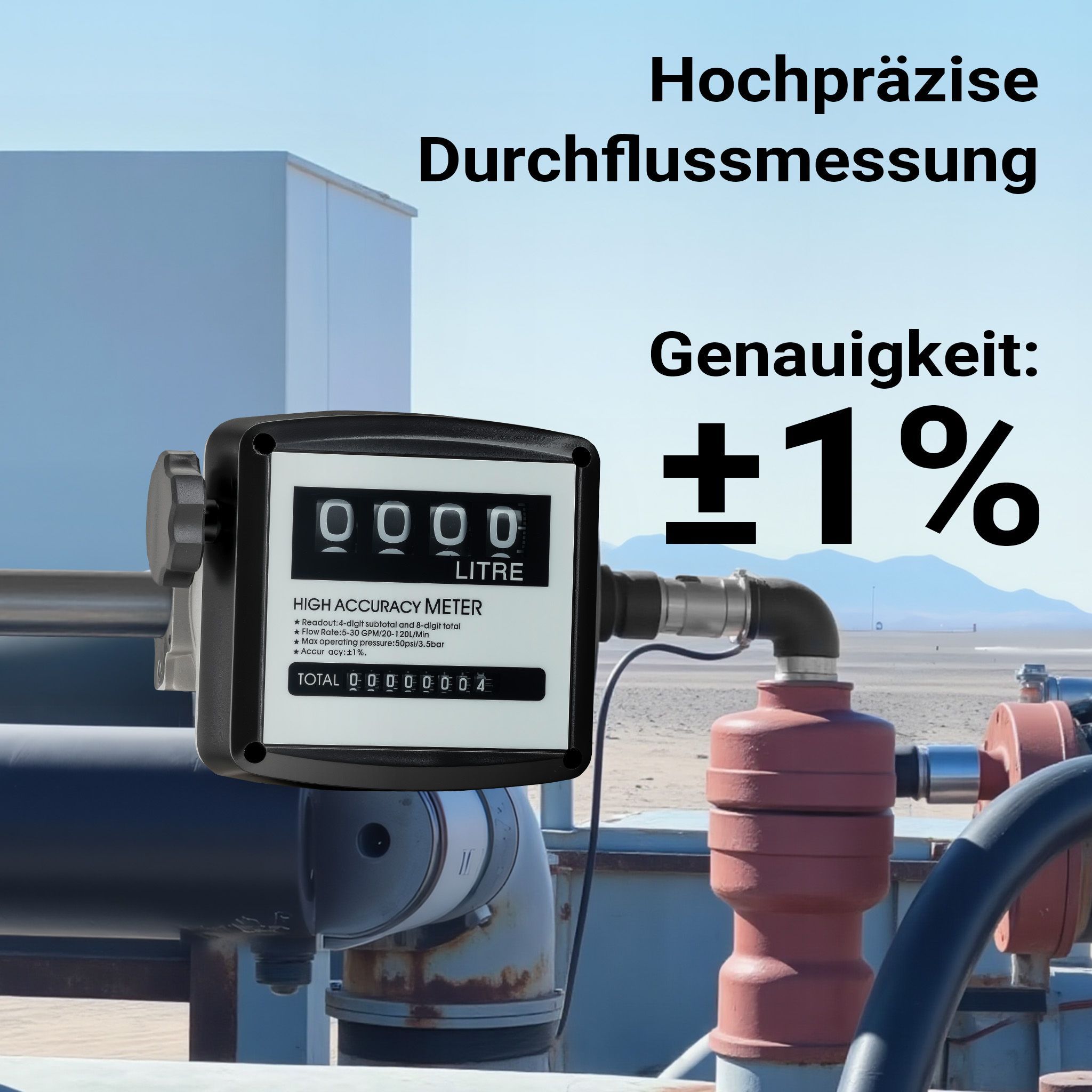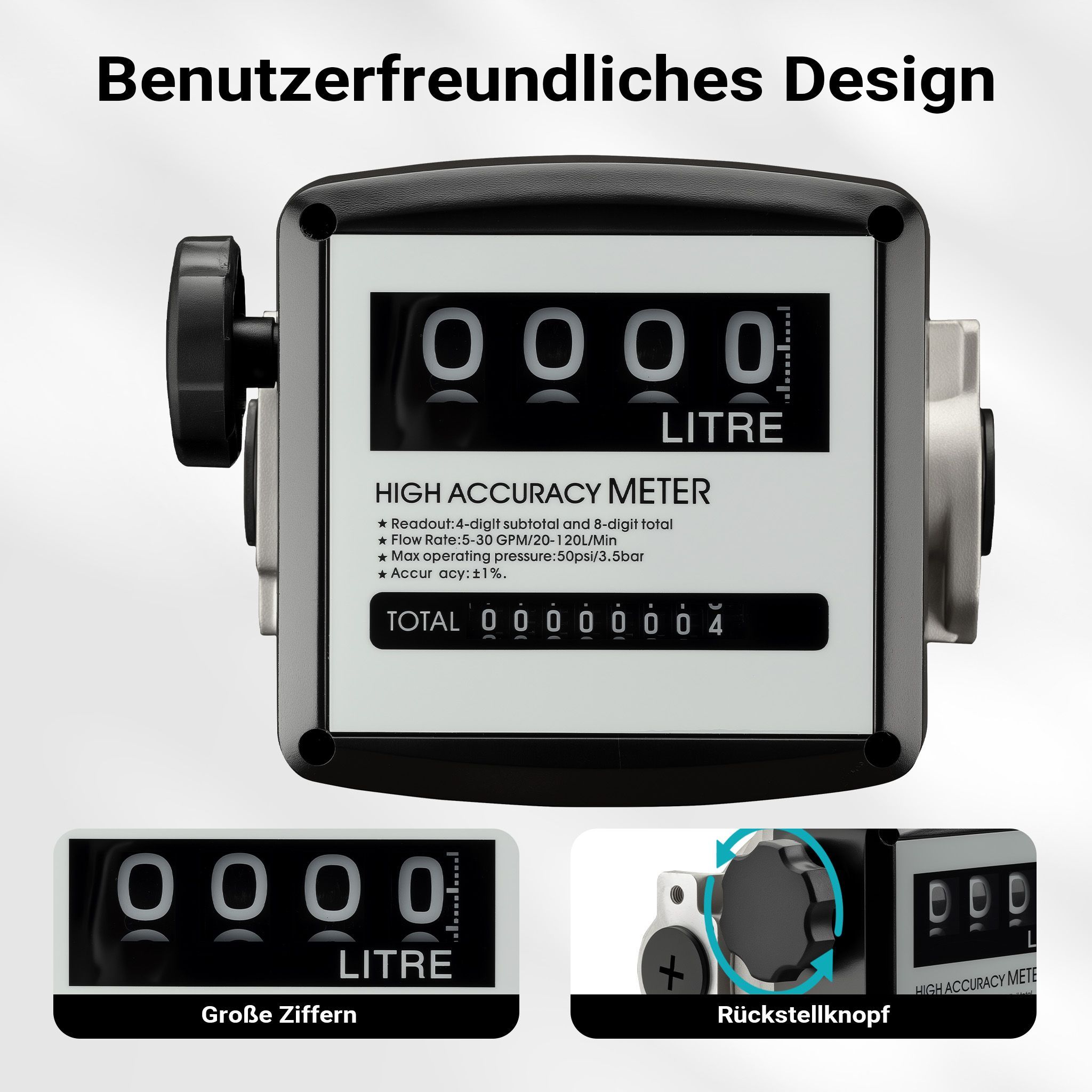 Wiltec Doppelzähler für Heizöl- Dieselpumpe 3bar 32mm (1") 20-120l/min Zähler