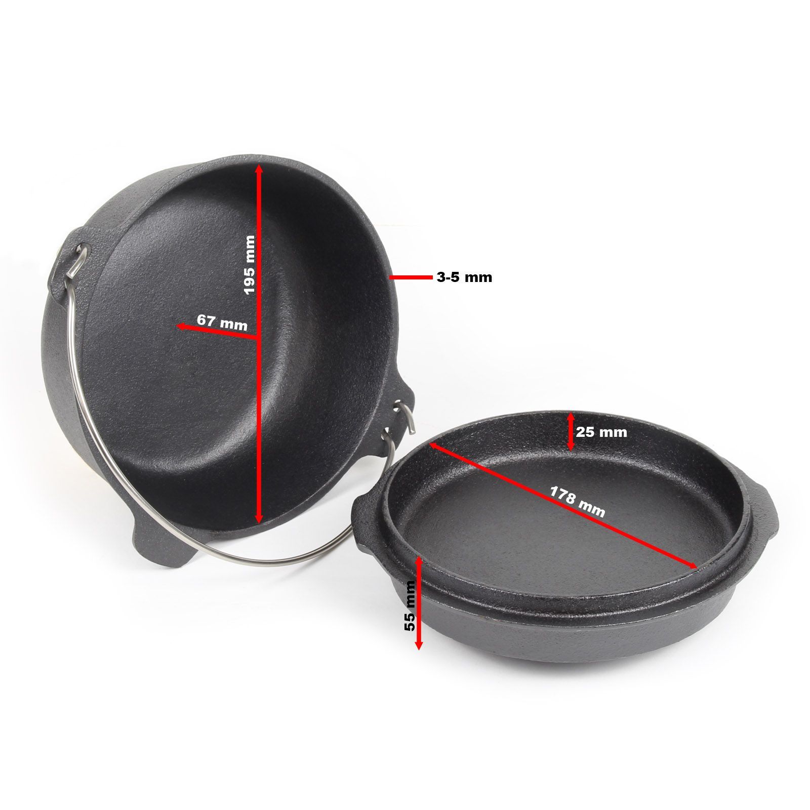Wiltec Dutch Oven 3l Untersetzer Deckelheber Kochtopf Gusseisen Feuertopf
