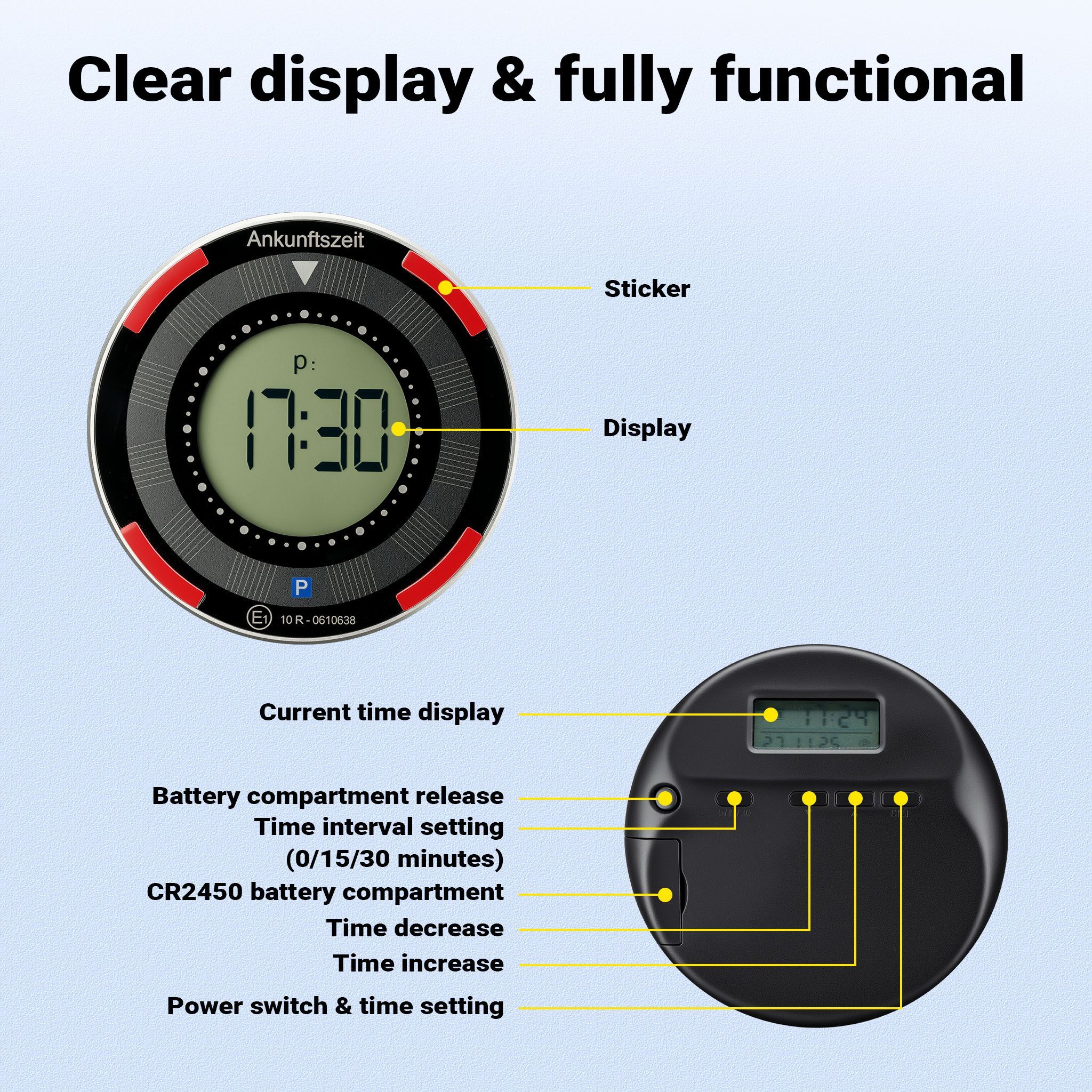 Wiltec Elektronische Parkscheibe Solarpanel rund digitale Parkuhr KBA-Zulassung