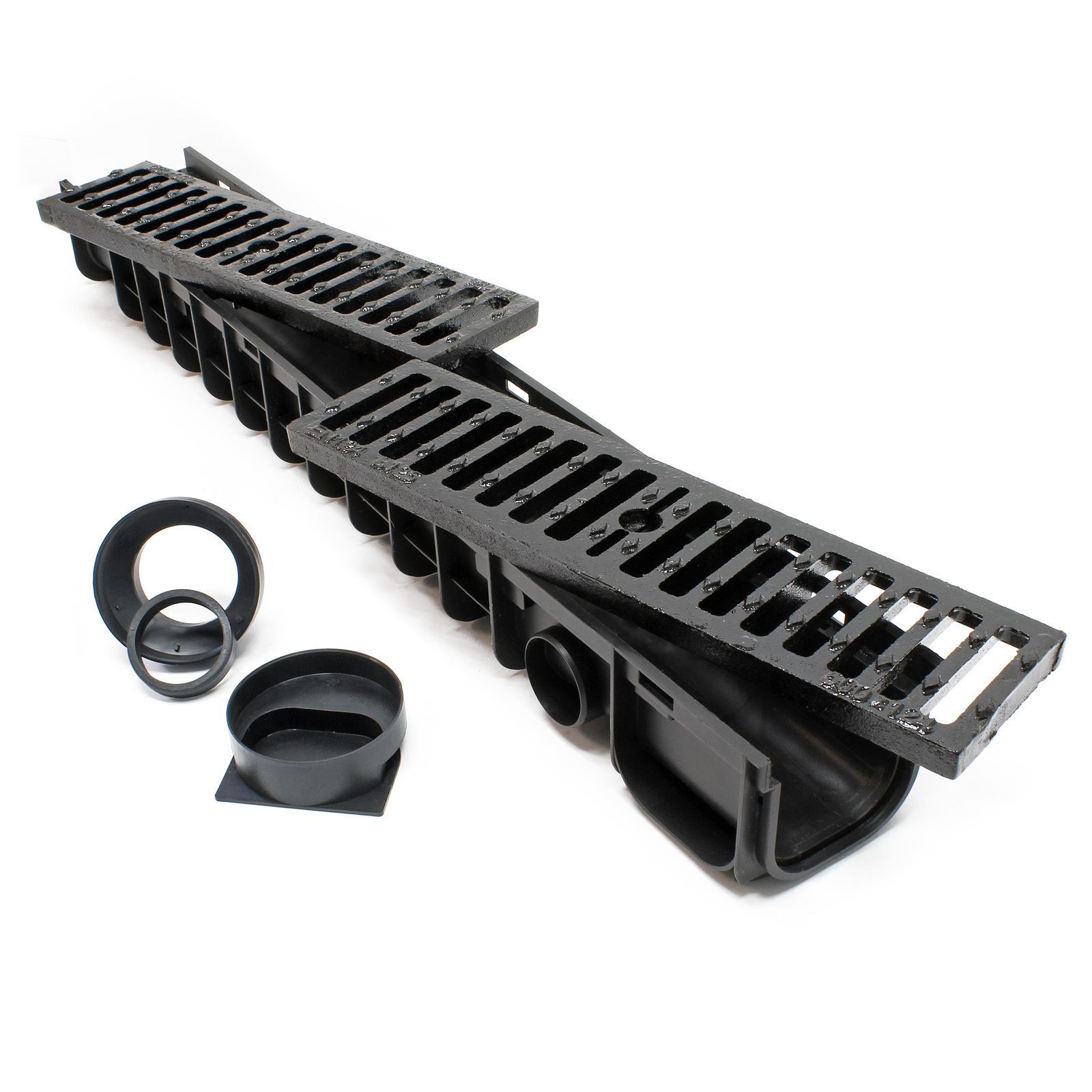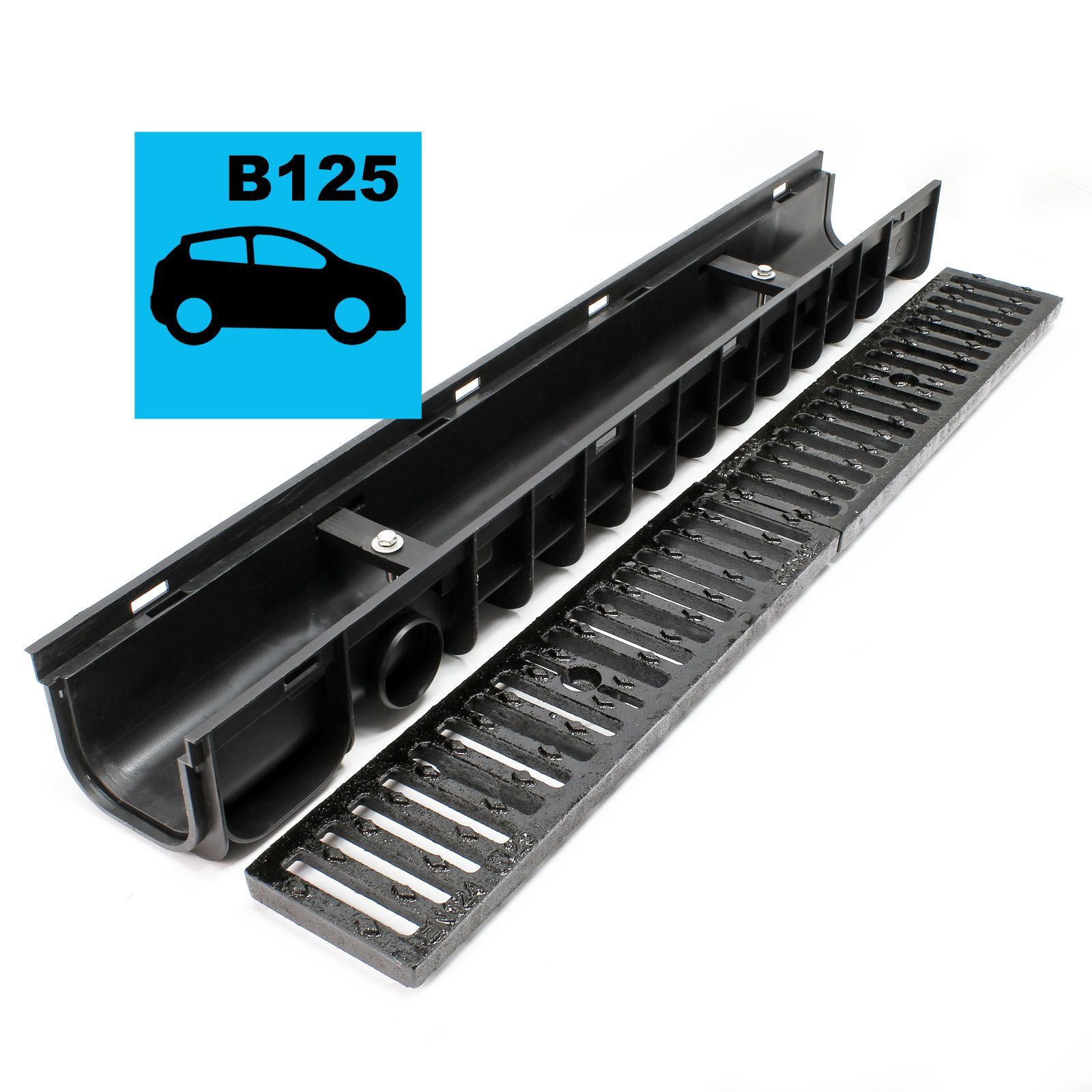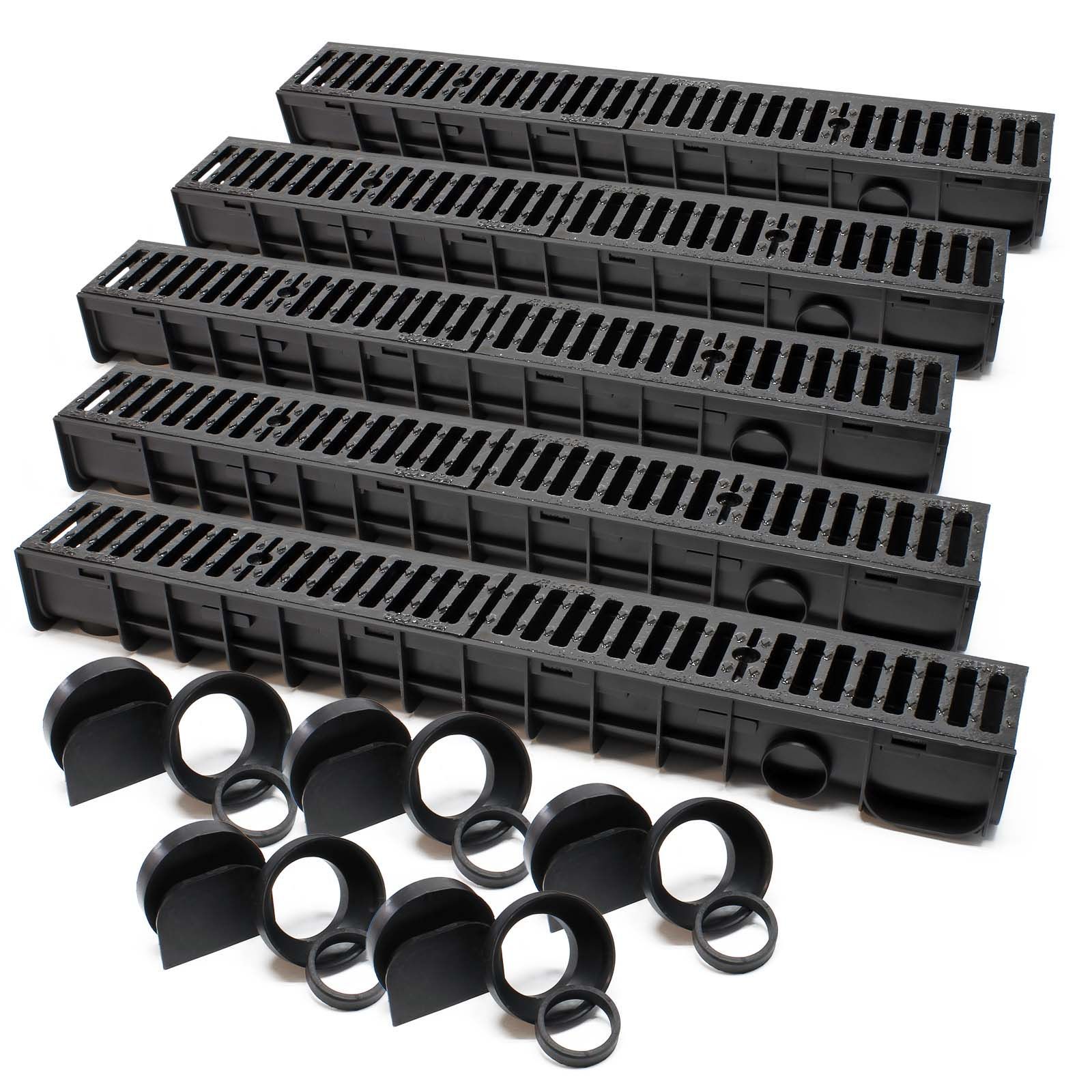 Wiltec Entwässerungsrinne 5x1m Abdeckrost 12,5t Gusseisen Ablaufrinne Abwasser