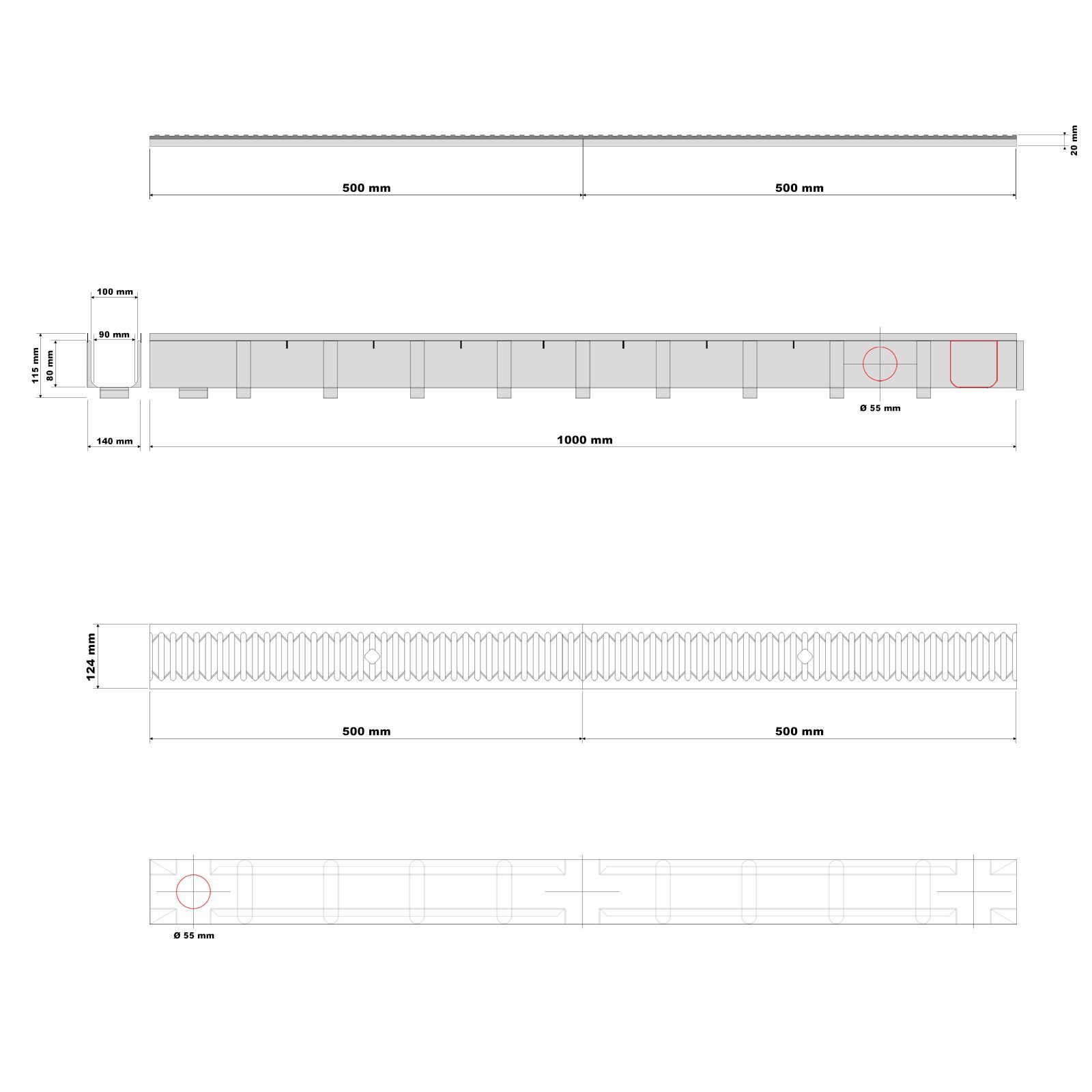 1000 x 140 x 115 mm