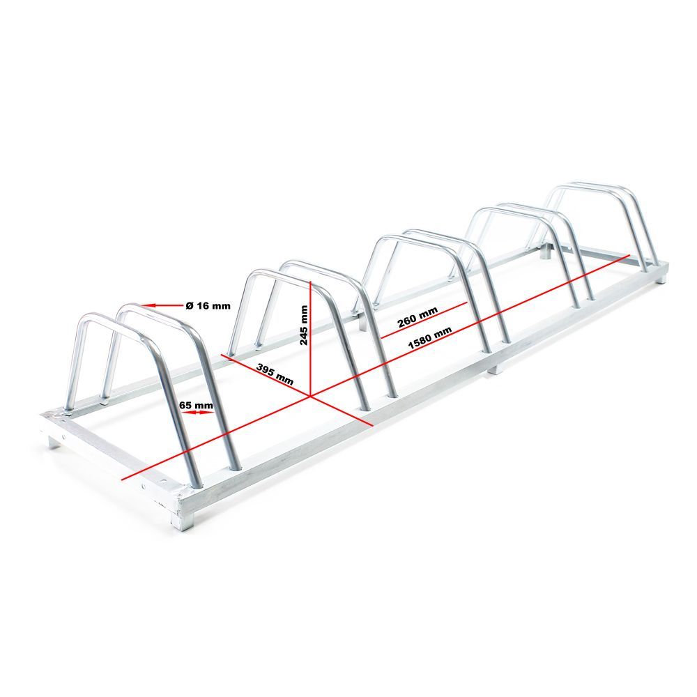 • Fahrradständer für 5 Räder, zweiseitige Nutzung, Reifenbreite bis 55 mm, verzinkt
