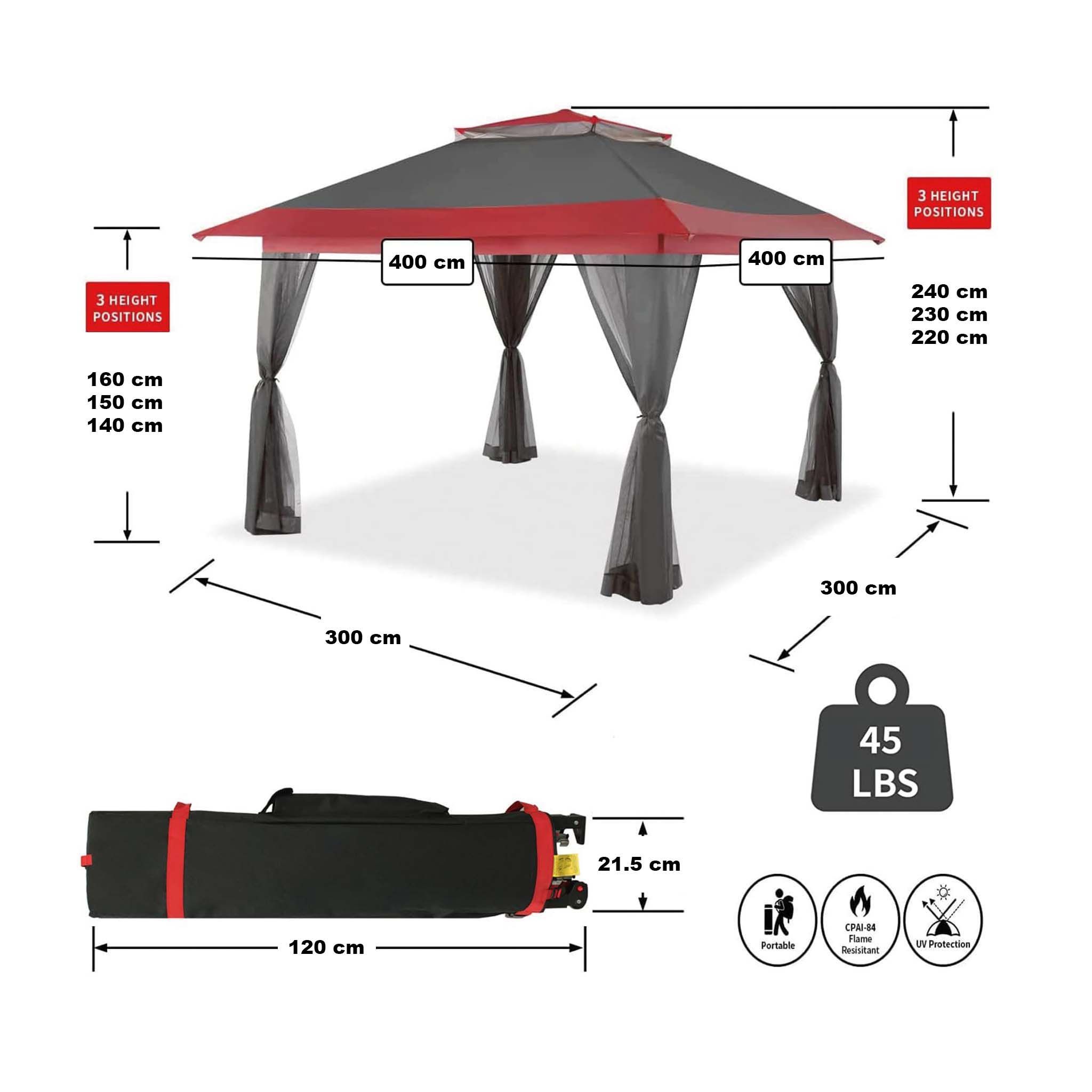 Wiltec Faltpavillon Moskitonetz 4x4m grau rot Gartenpavillon Partyzelt Pavillion
