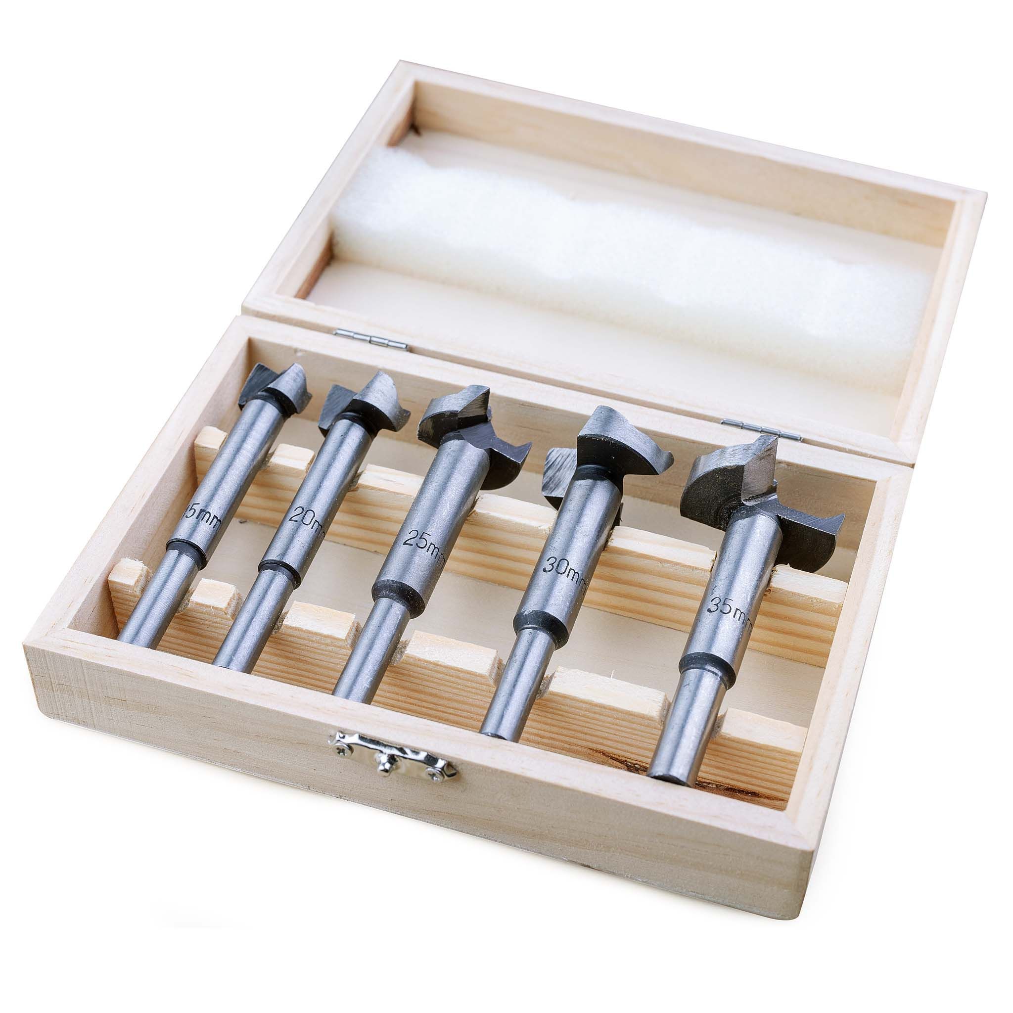 Wiltec Forstner-Bohrersatz 5-teilig Lochbohrer 15-35mm Stahlbohrer Bohrerset