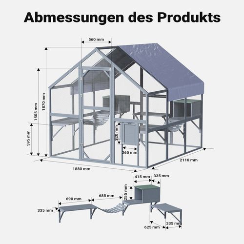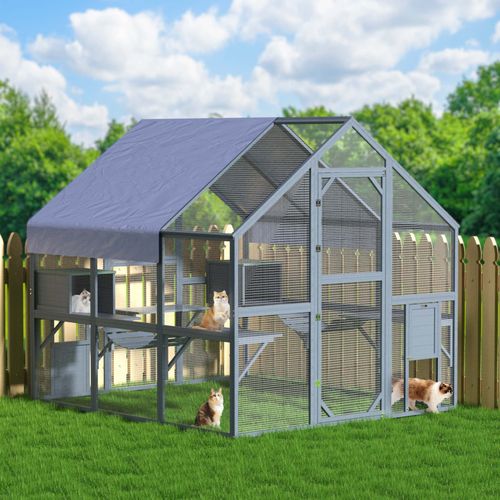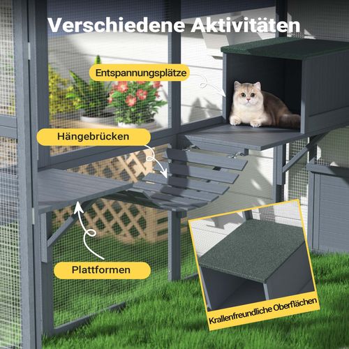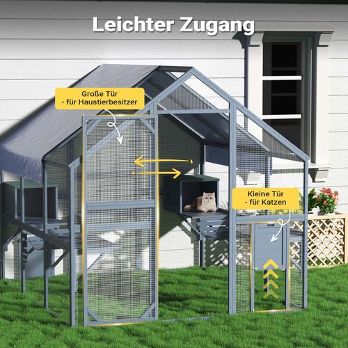 Wiltec Freilaufgehege Katzen 210x187x187cm Katzenfreigehege Holz Außengehege