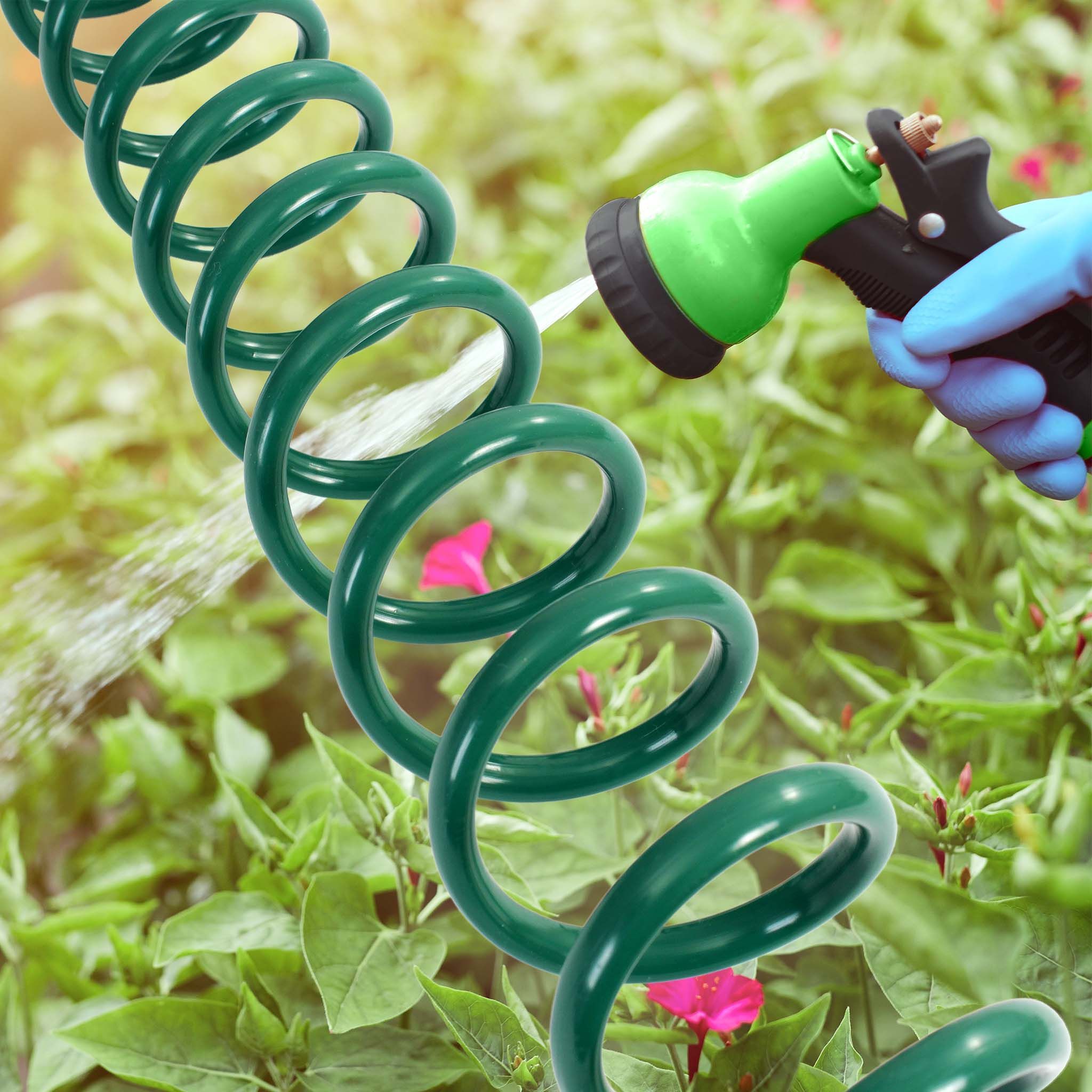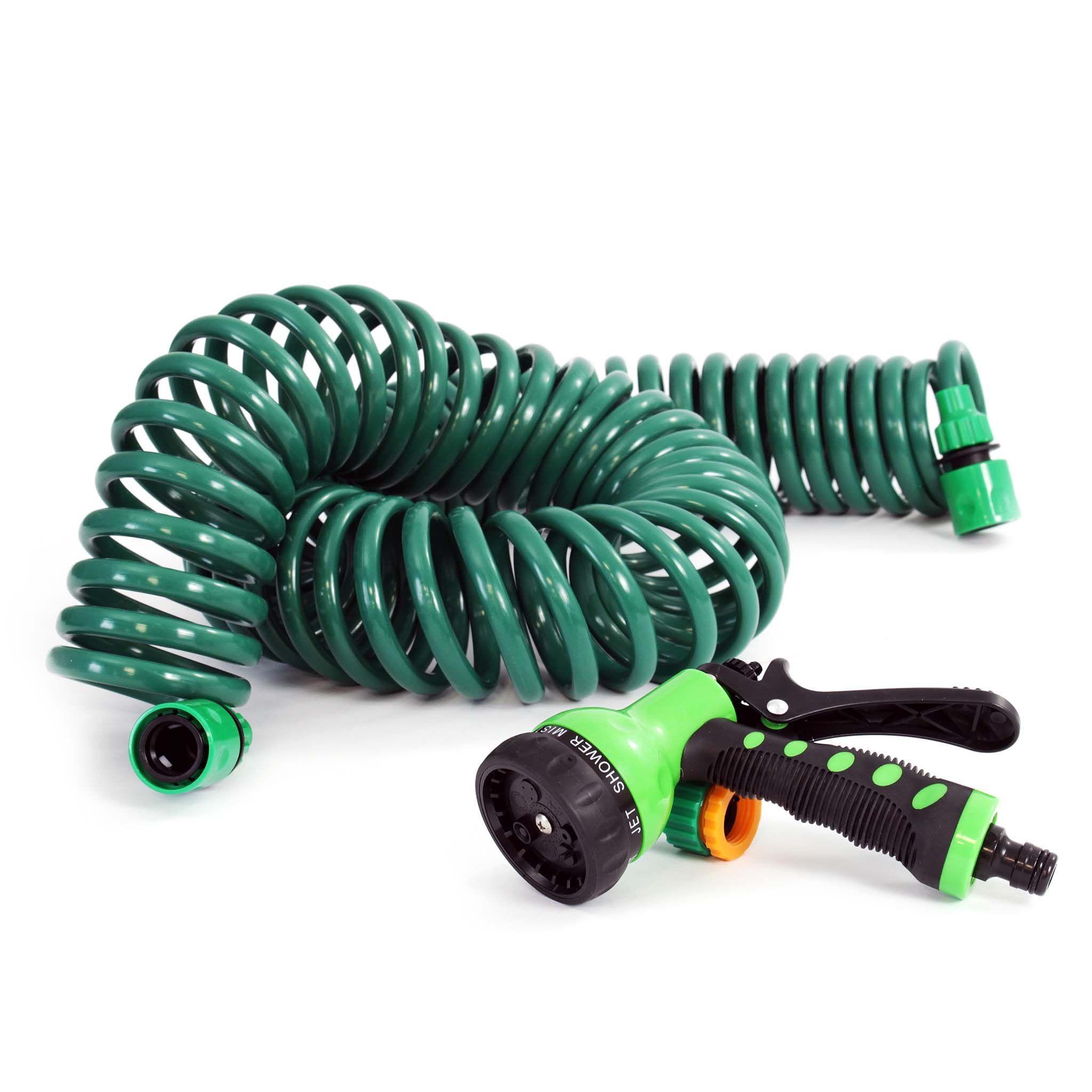 Wiltec Gartenschlauch Spiralschlauch 15m 7 Sprühfunktionen Bewässerungsschlauch