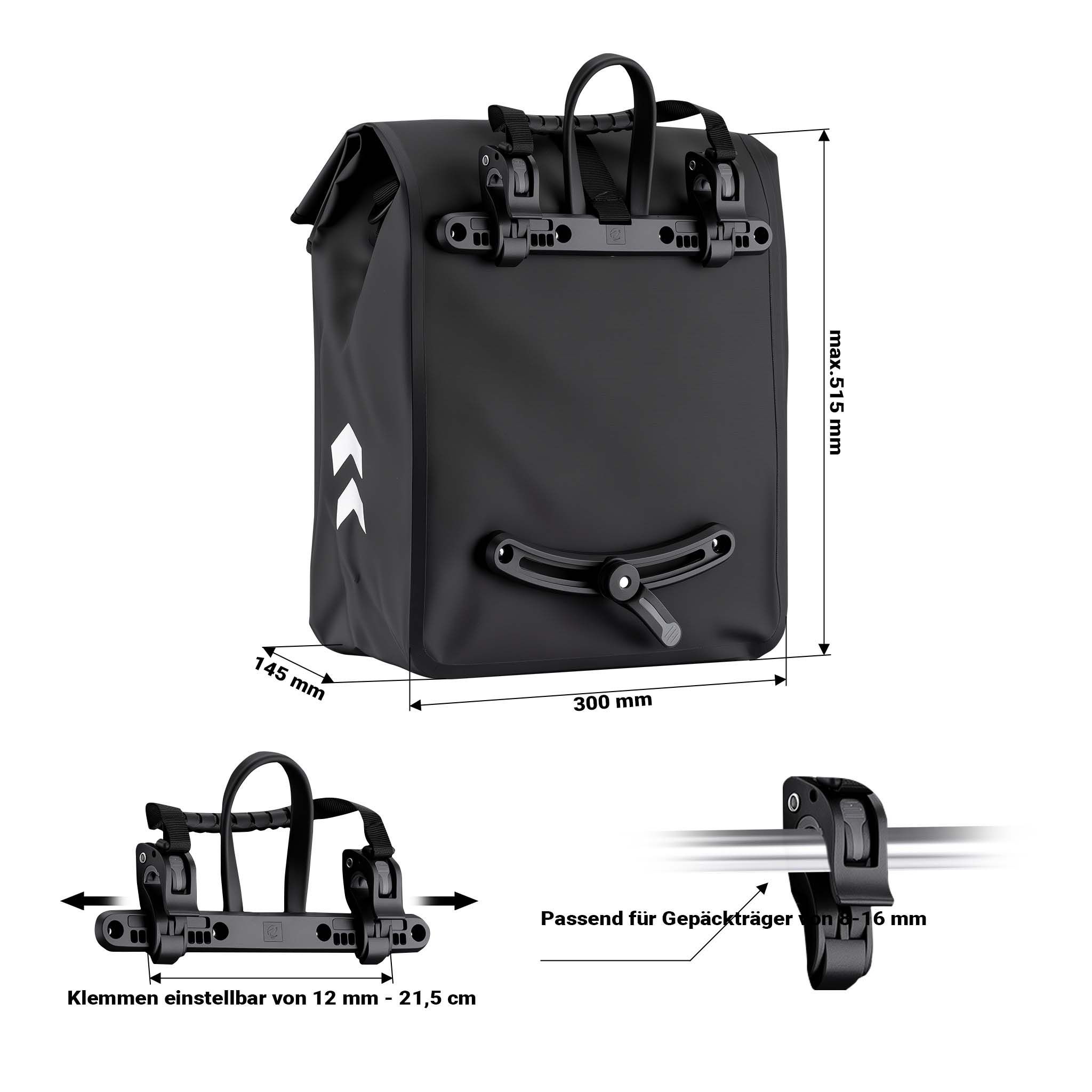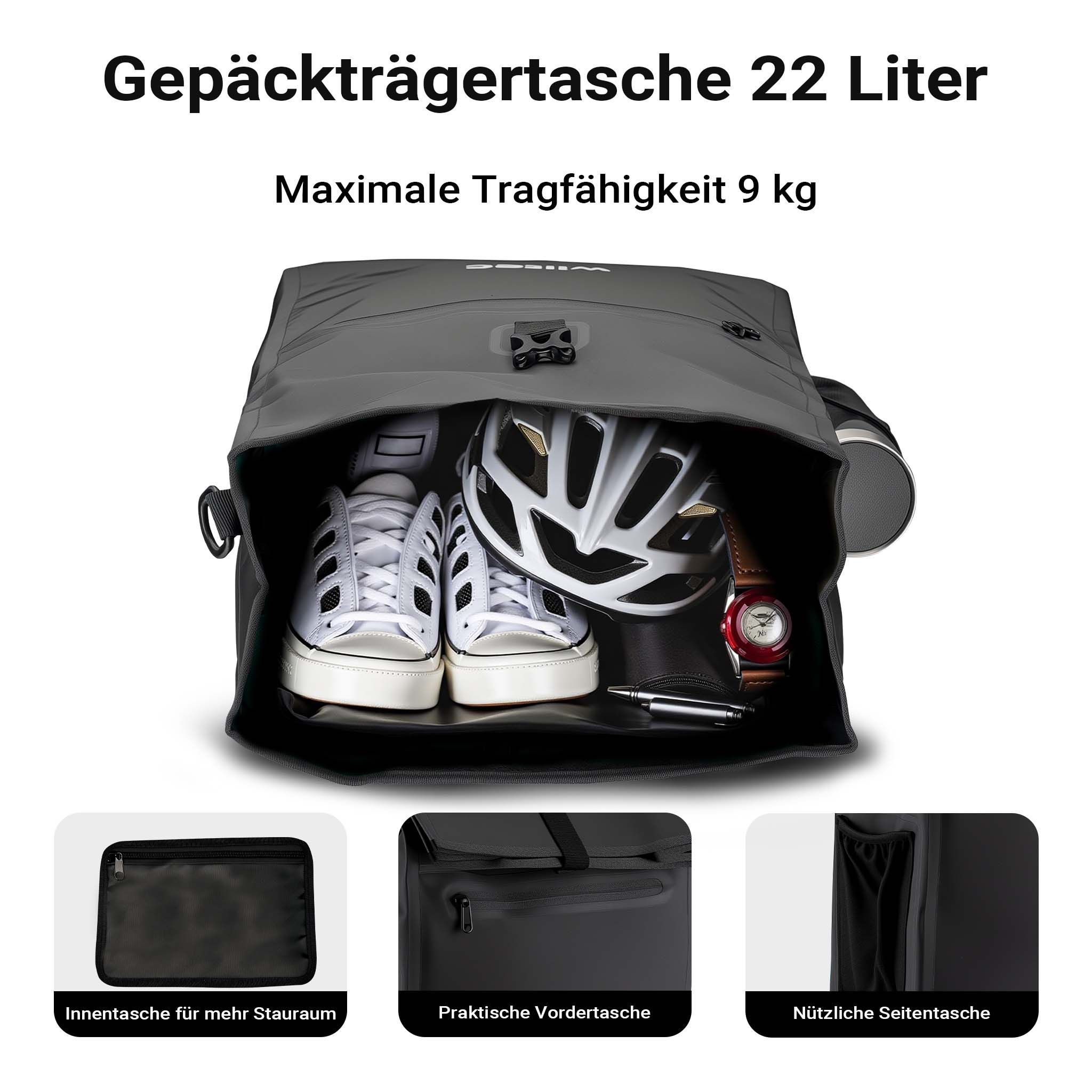 Wiltec Gepäckträgertasche schwarz 22l Fahrradtasche Gepäckträger Gepäcktasche