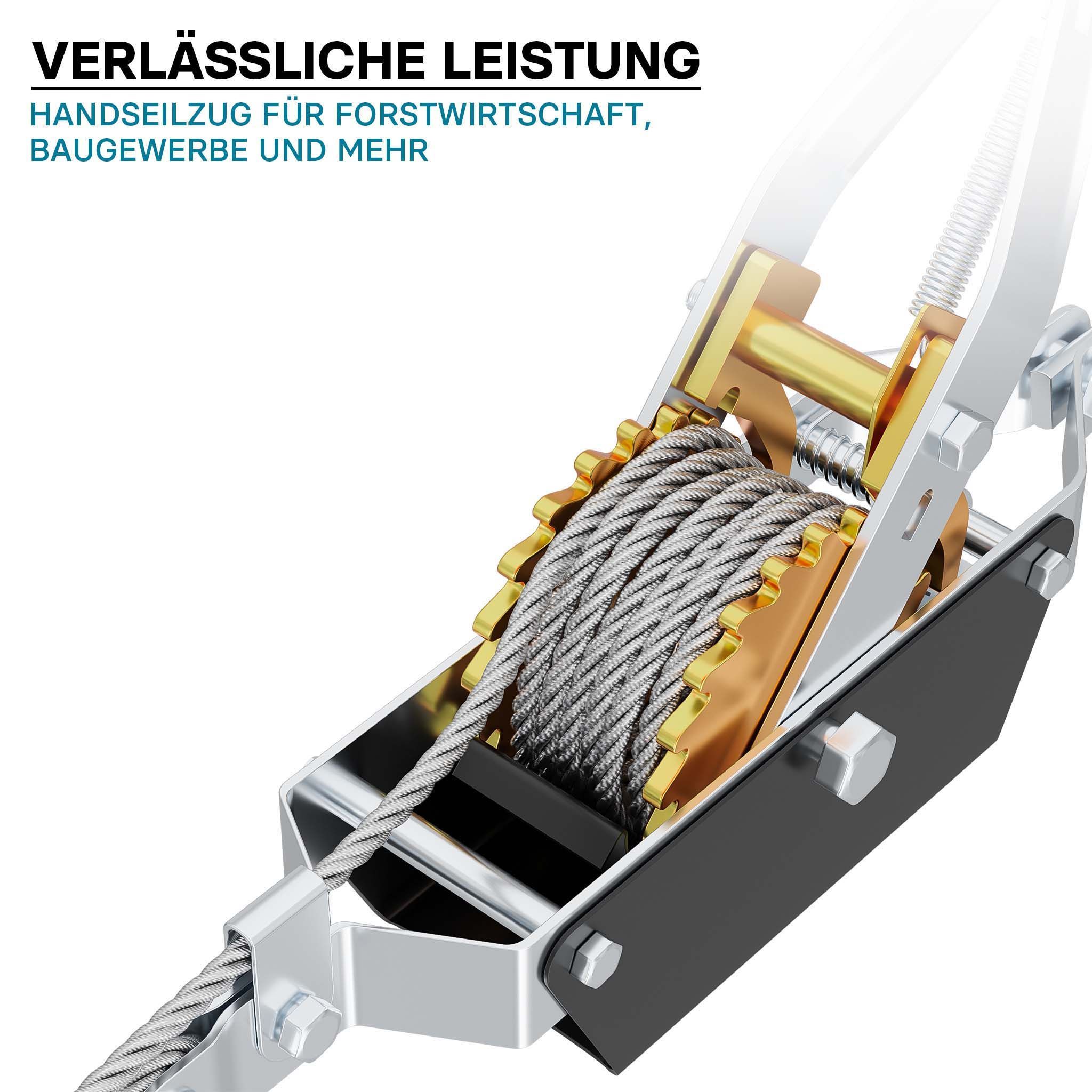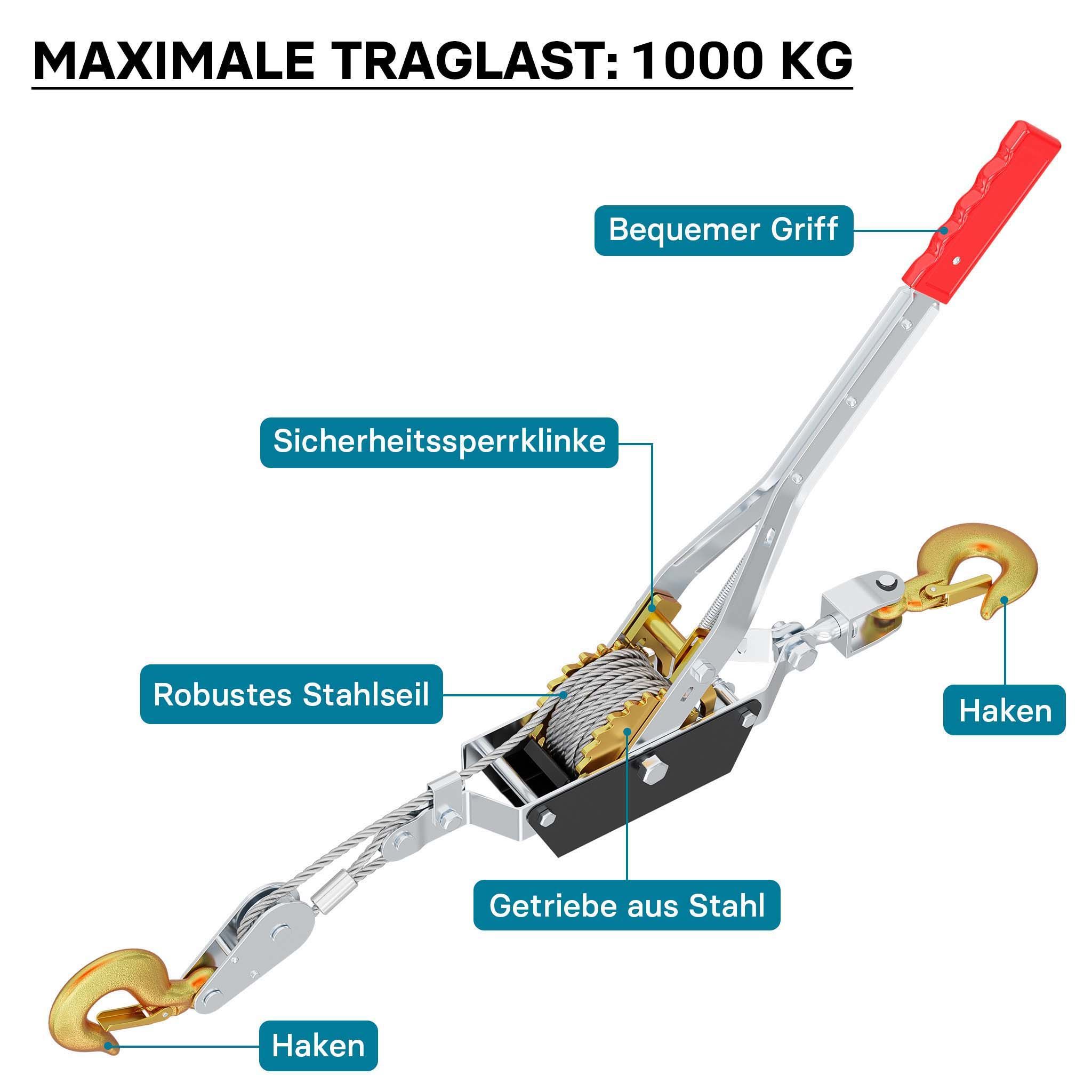 Wiltec Handseilzug 1,8m 1000kg Drahtseil Flaschenzug Handwinde Seilzug Seilwinde