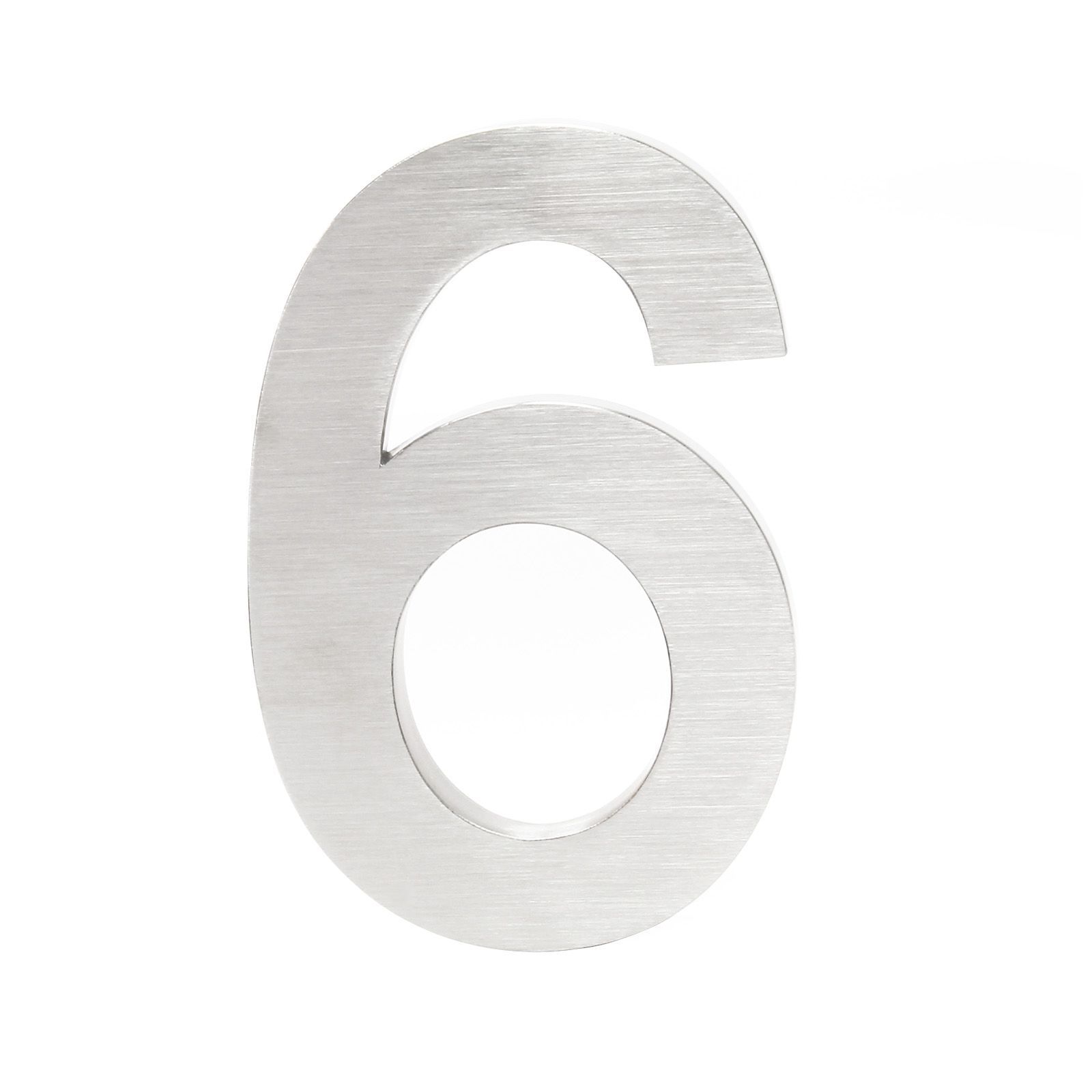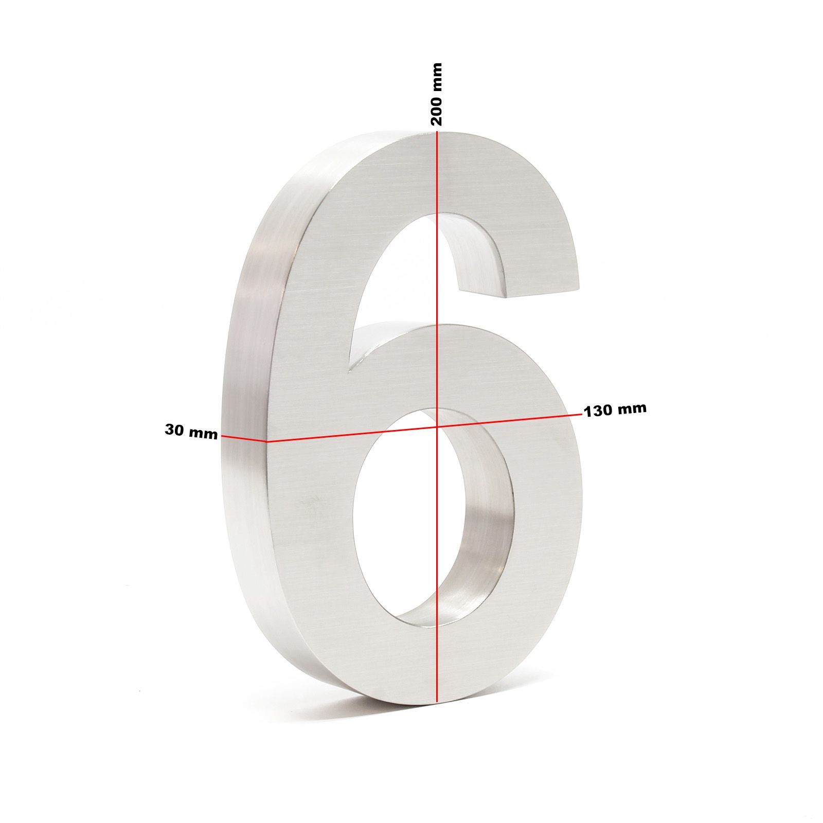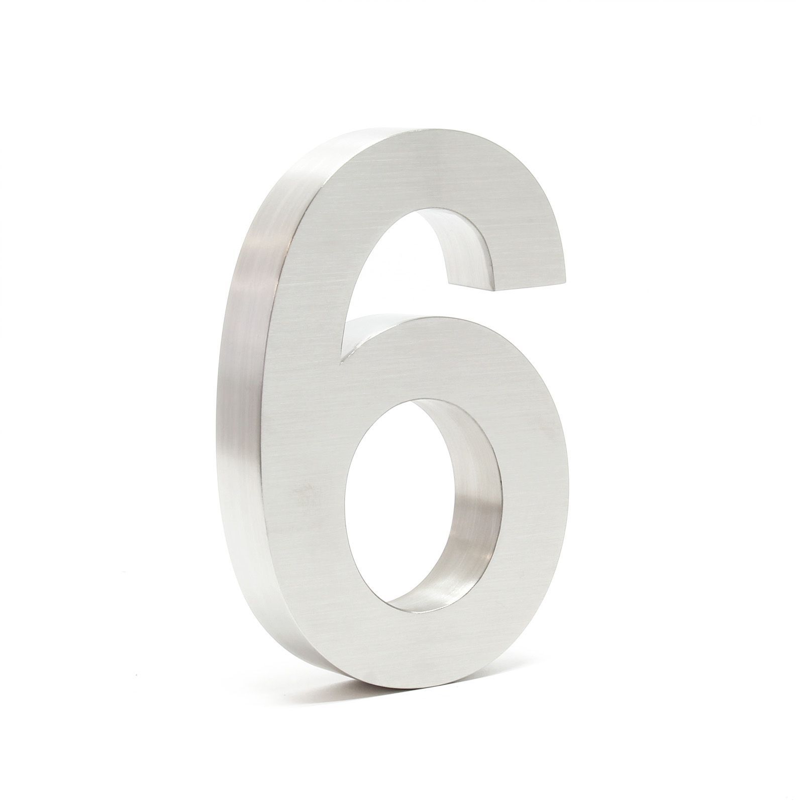 Wiltec Hausnummer 6 silberfarben Edelstahl Hausnummer modern 3D-Design rostfrei