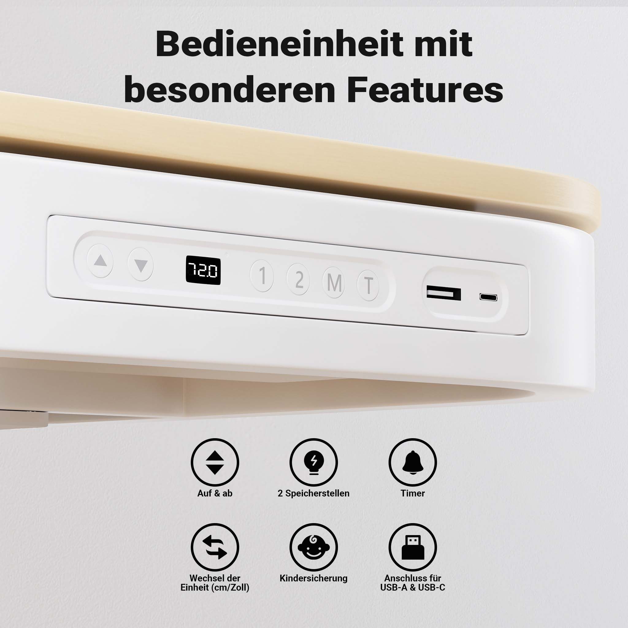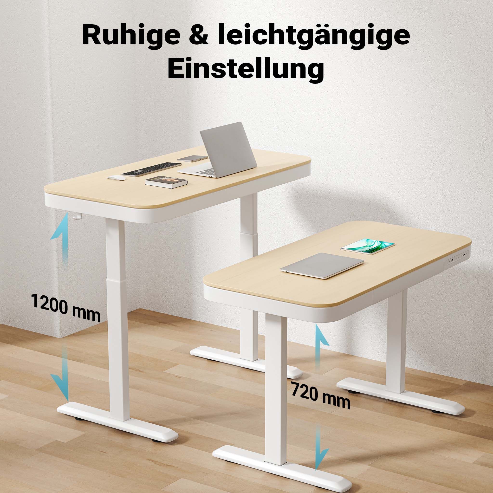 Wiltec Höhenverstellbarer Schreibtisch Einmotorig Ladestation Tischplatte Memory