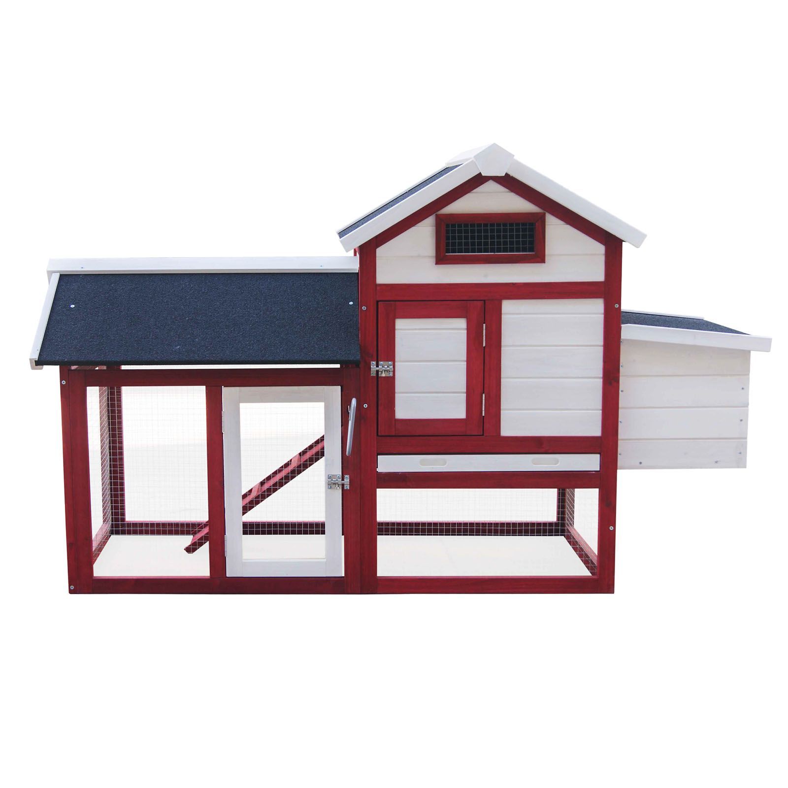 Wiltec Hühnerstall 1520x520x920mm Freilauf Tannenholz Hühnerhaus Kotwanne Huhn