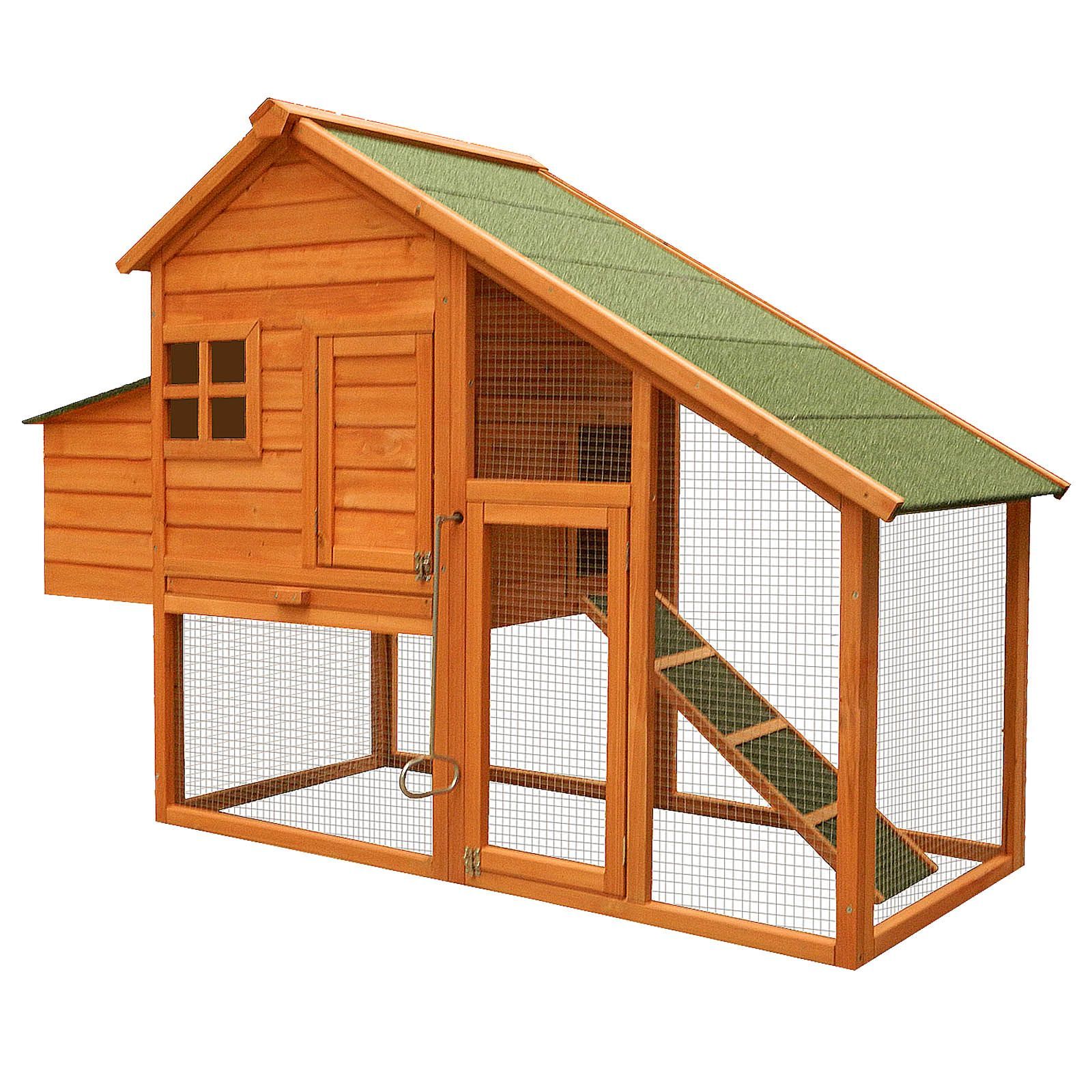 Wiltec Hühnerstall 1720x660x1200mm Freilauf Fichtenholz Hühnerhaus Kotwanne Huhn