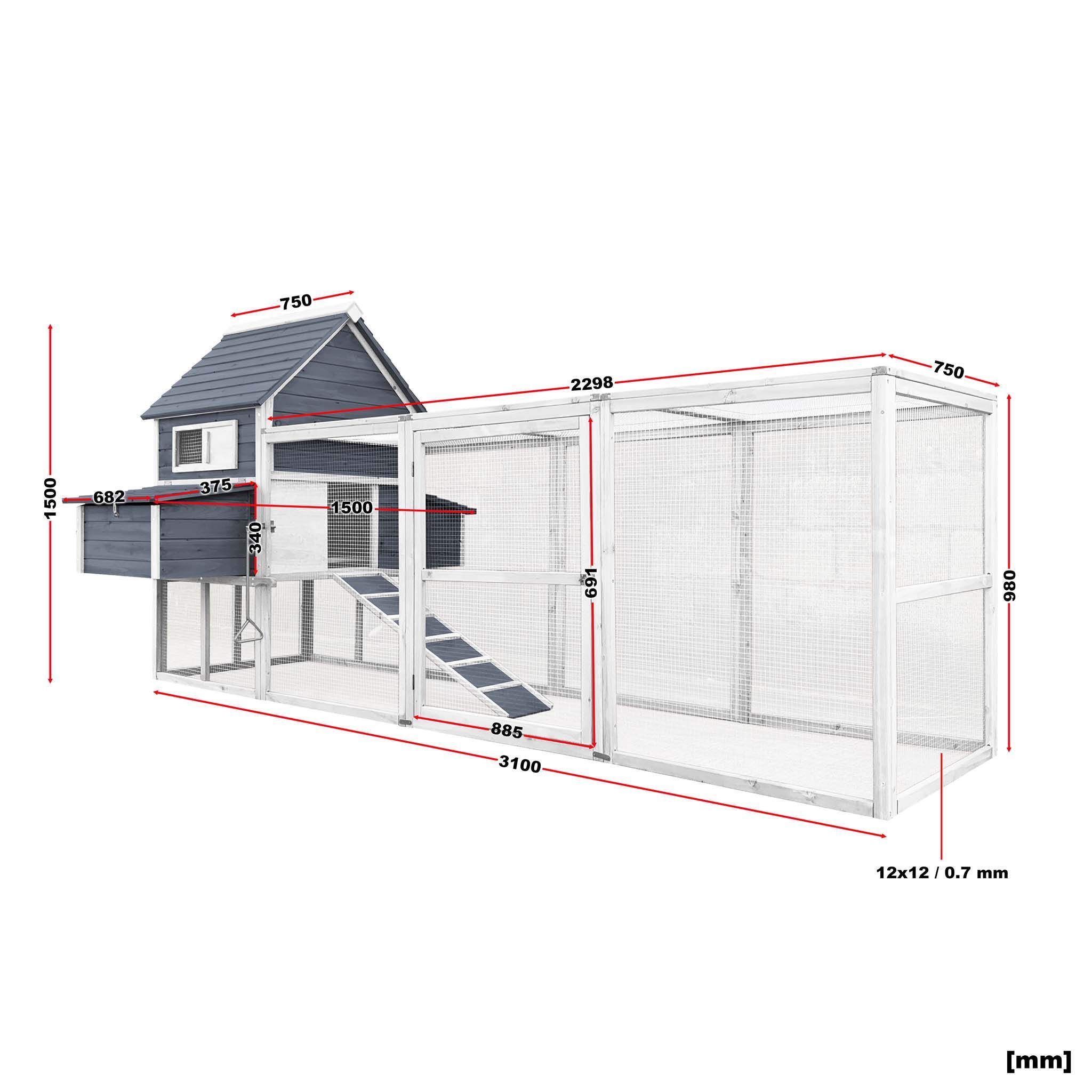 Wiltec Hühnerstall 3100x1500x1500mm Tannenholz Hühnerhaus Freilauf Kotwanne Huhn