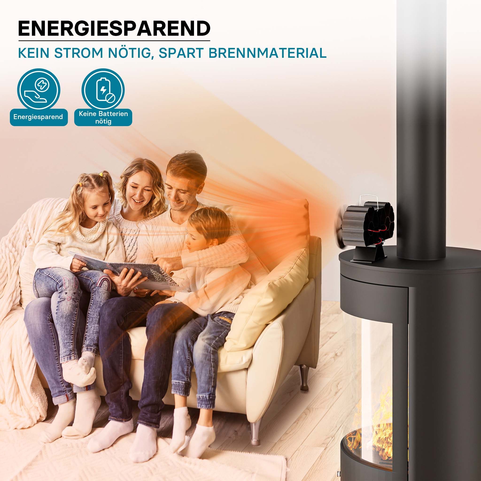 Wiltec Kaminofenventilator 12 Flügel stromlos Ofenventilator Kaminventilator