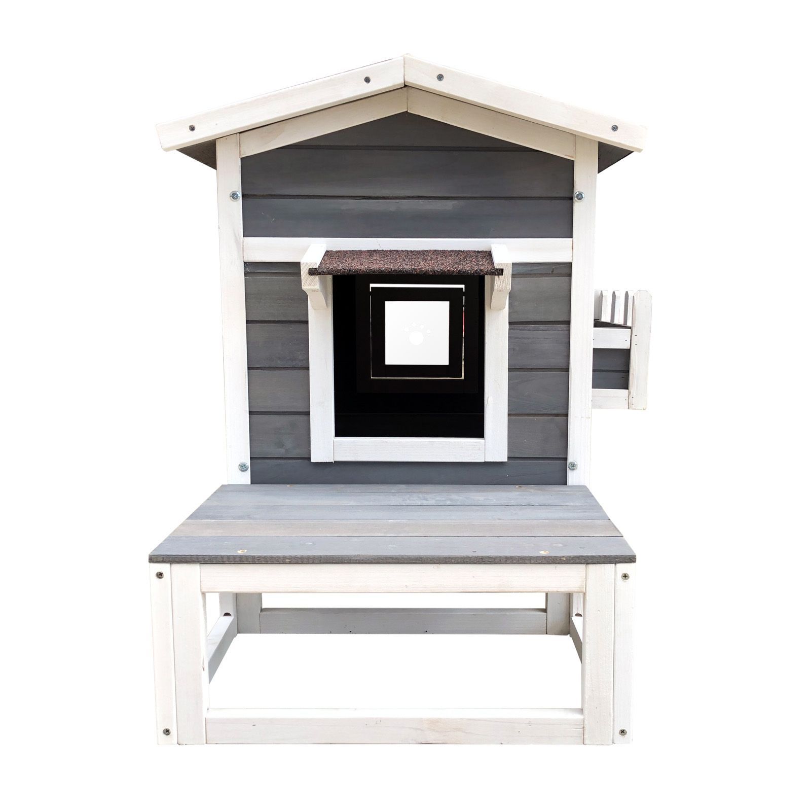 Wiltec Katzenhaus 73,5x48x104,5cm Holz 2 Zugänge Katzenhütte Lodge Fluchttür