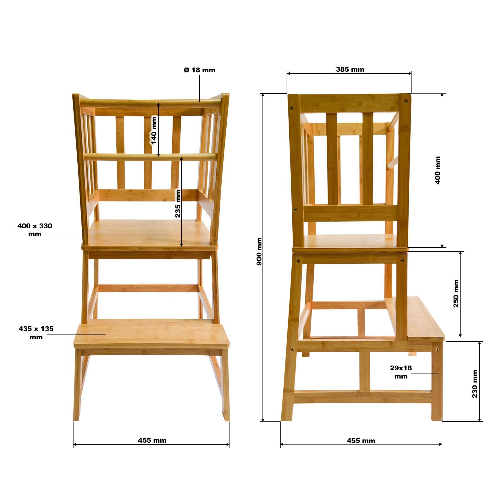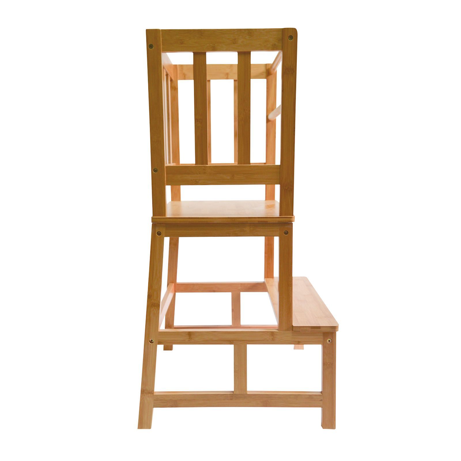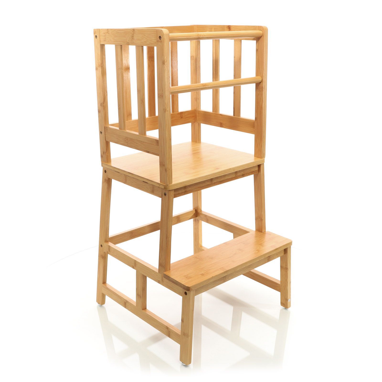 Wiltec Kinderstuhl Lernturm 46x46x90cm Bambus Lernstuhl Kinder Stehstuhl