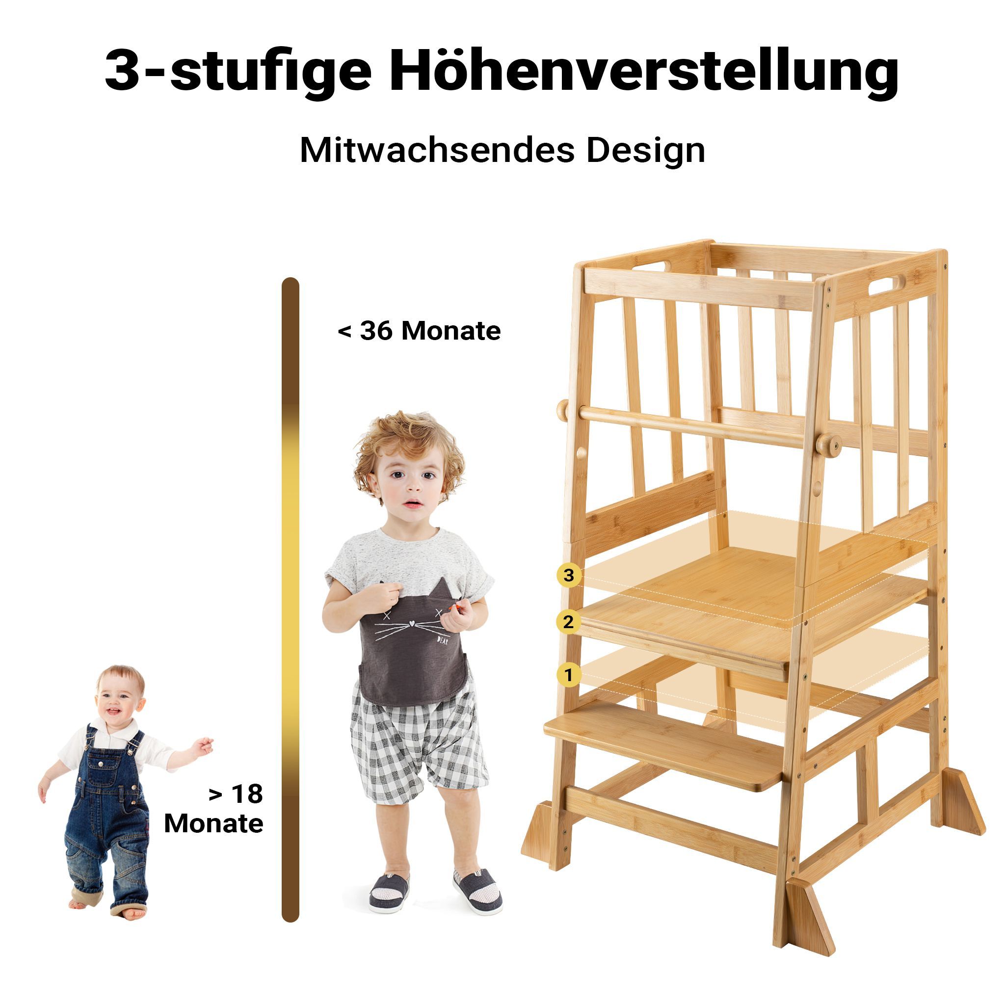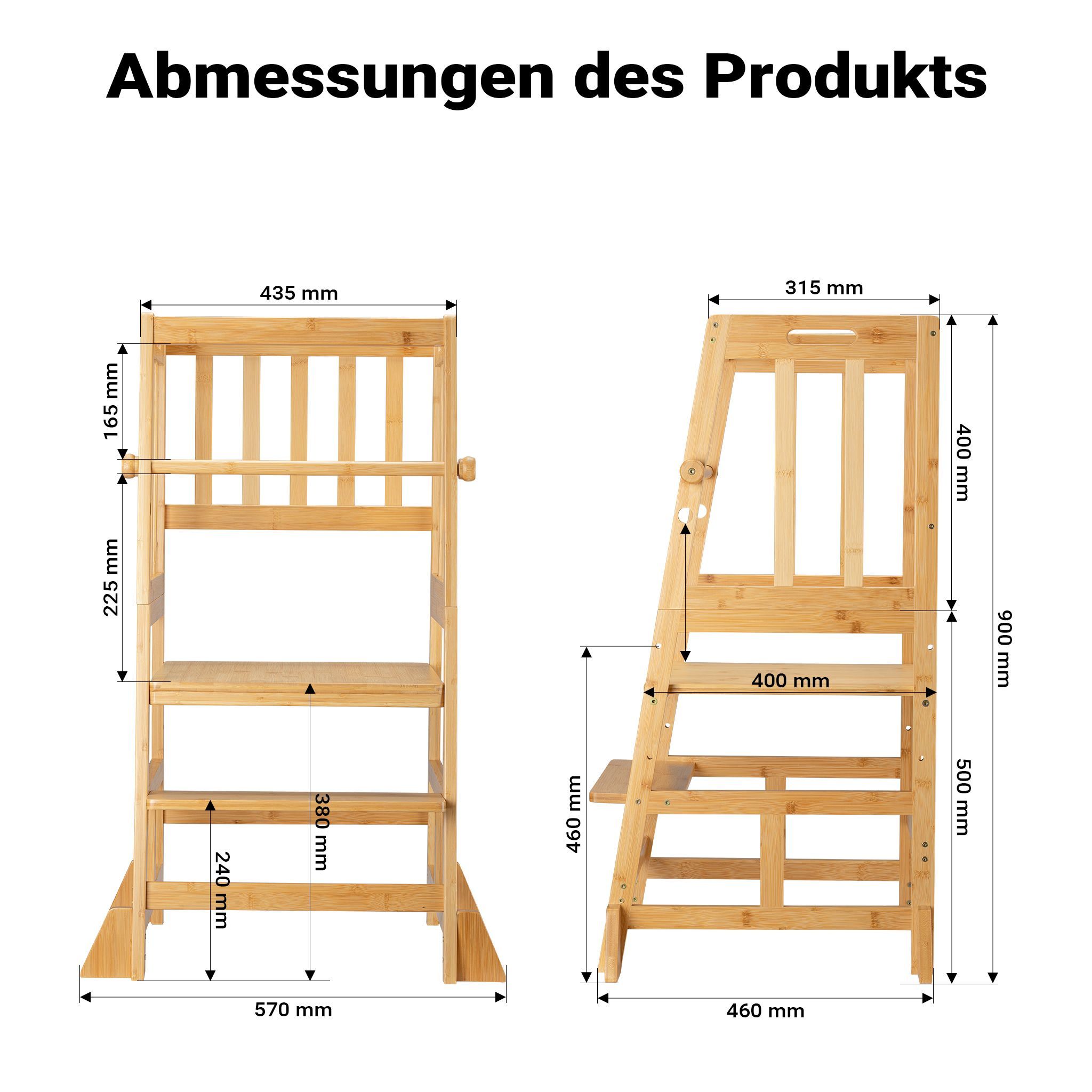 Wiltec Kinderstuhl Lernturm 57x46x90cm Bambus Lernstuhl Kinder Stehstuhl