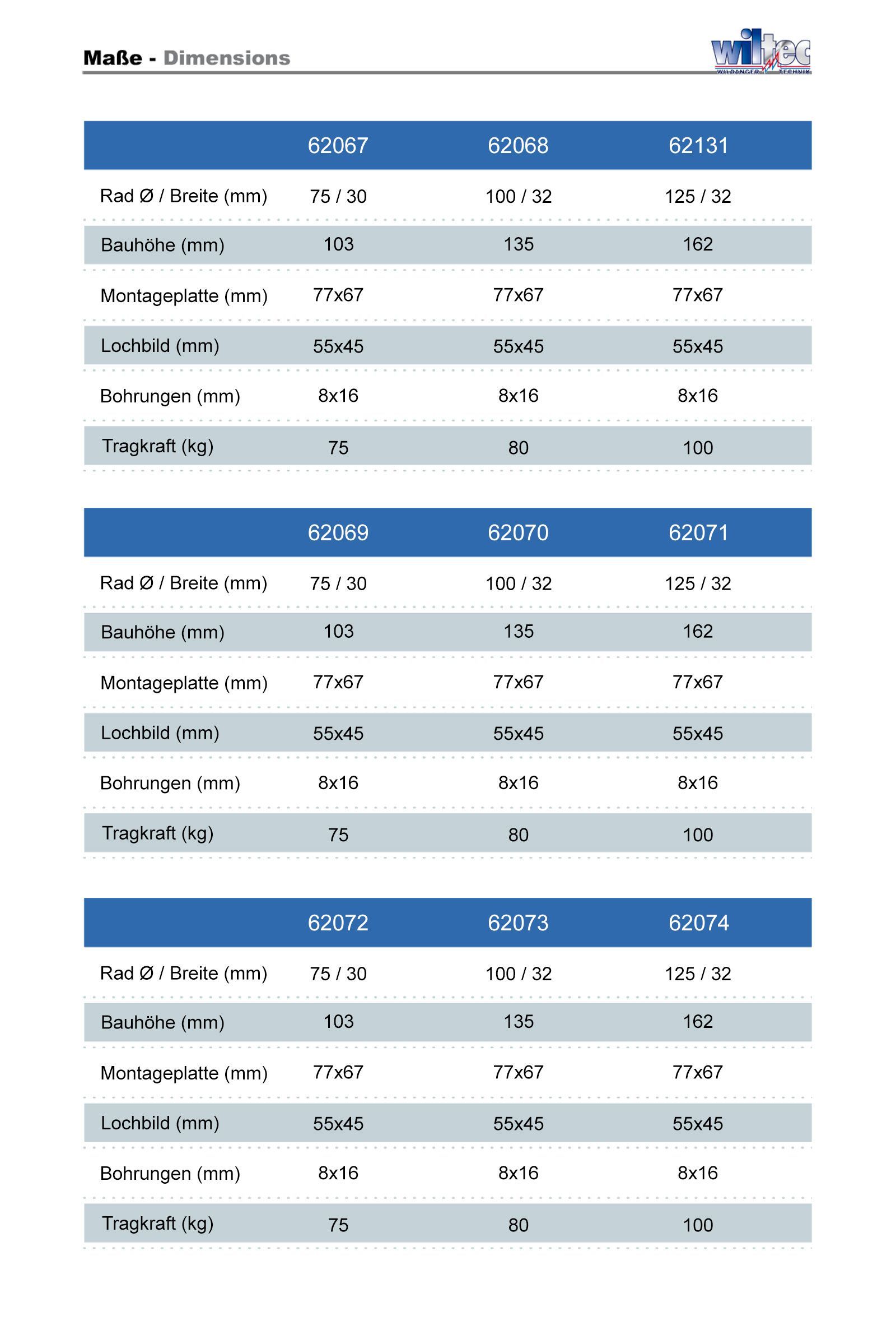 • Wiltec Lenkrolle o. Bremse Transportrolle Laufrolle 75mm 75kg Möbelrolle