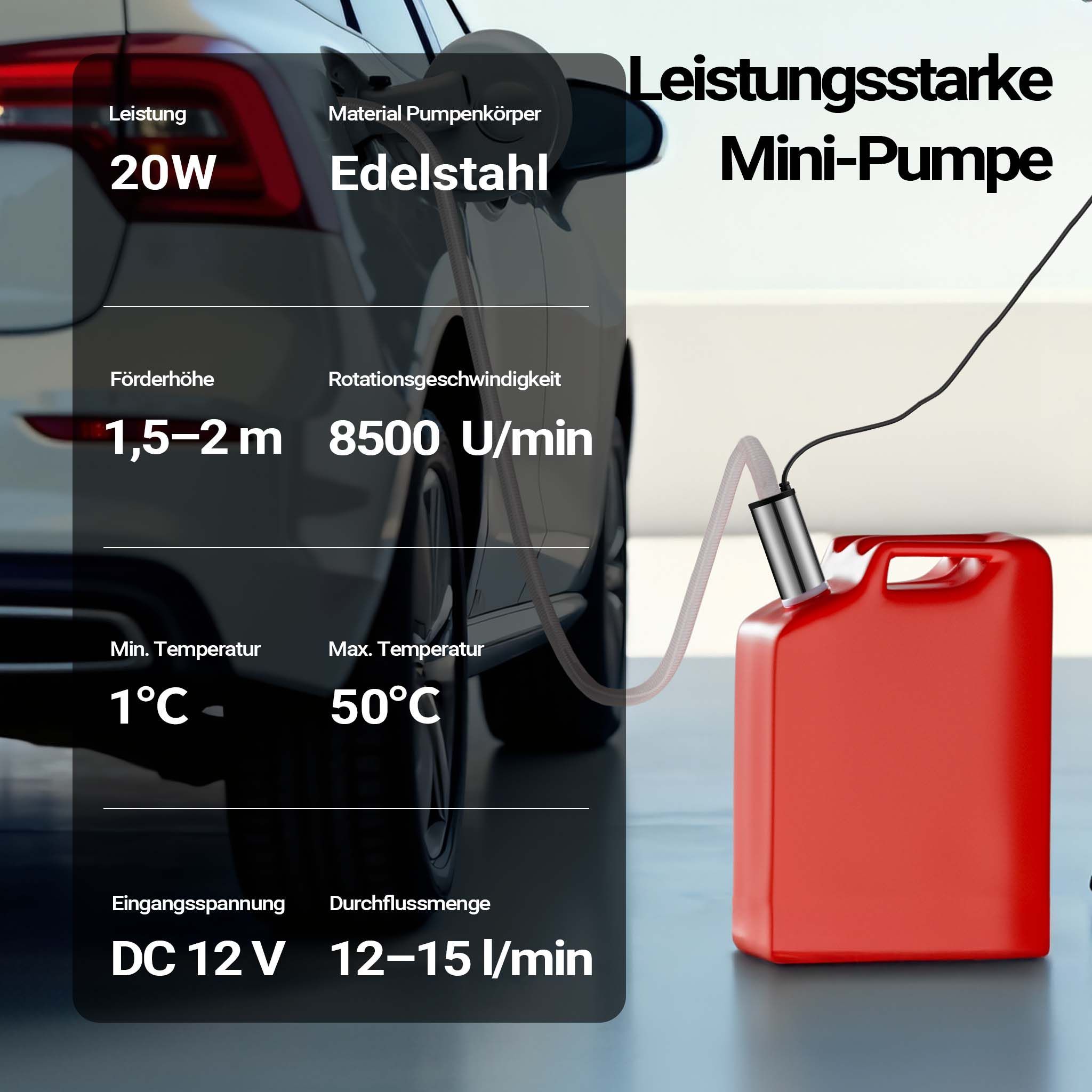 Wiltec Mini Pumpe 12-15l/min 8500U/min 12V 16mm Tauchpumpe Wasser Dieselöl