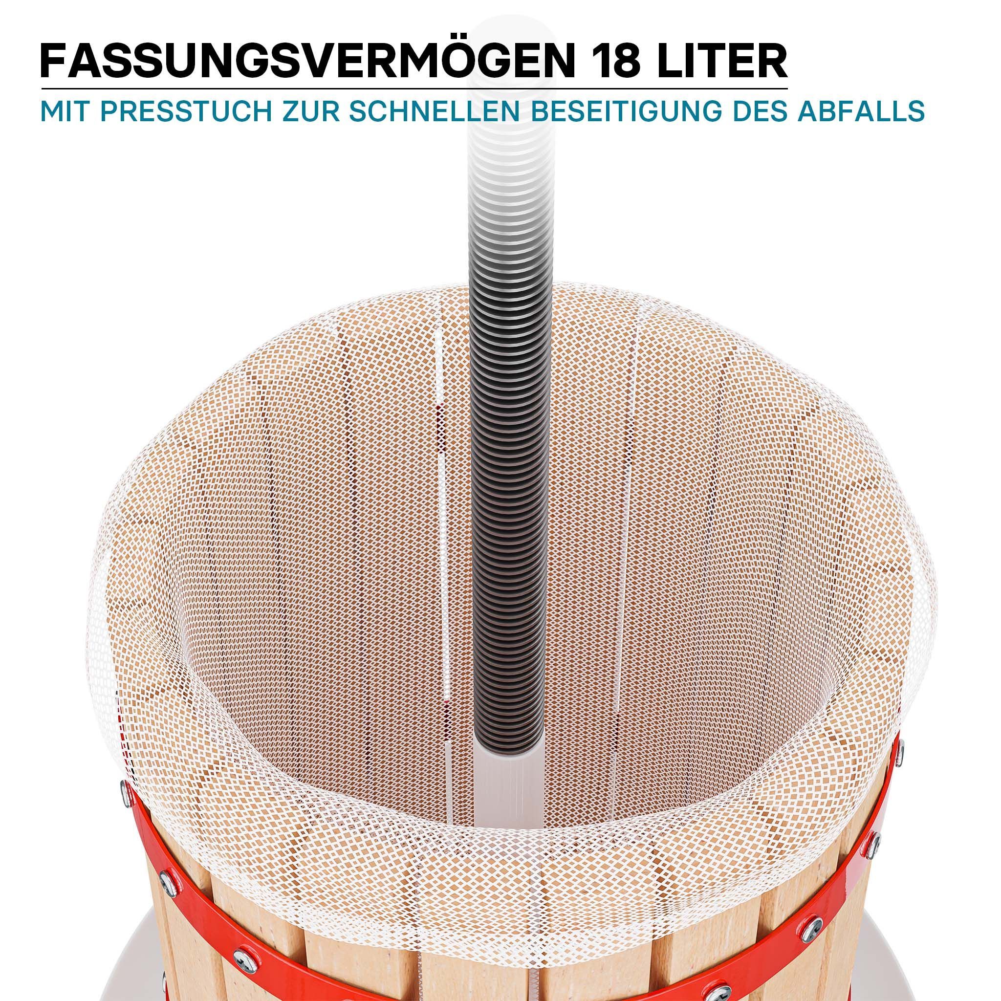 Wiltec Obstpresse 18l mit 3x Presstuch Maischepresse Weinpresse Saftpresse