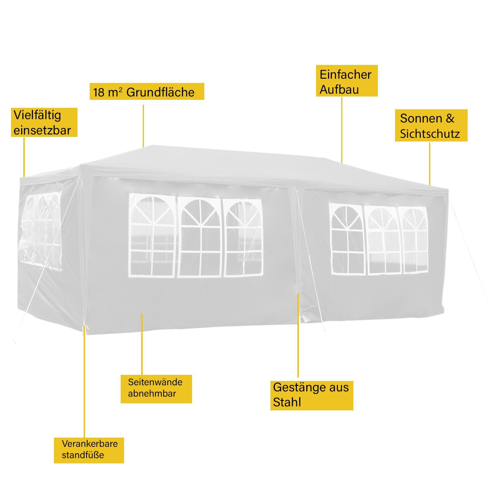 Wiltec Pavillon 3x6m in Weiß mit UV-Schutz 50+ Gartenpavillon Partyzelt Camping