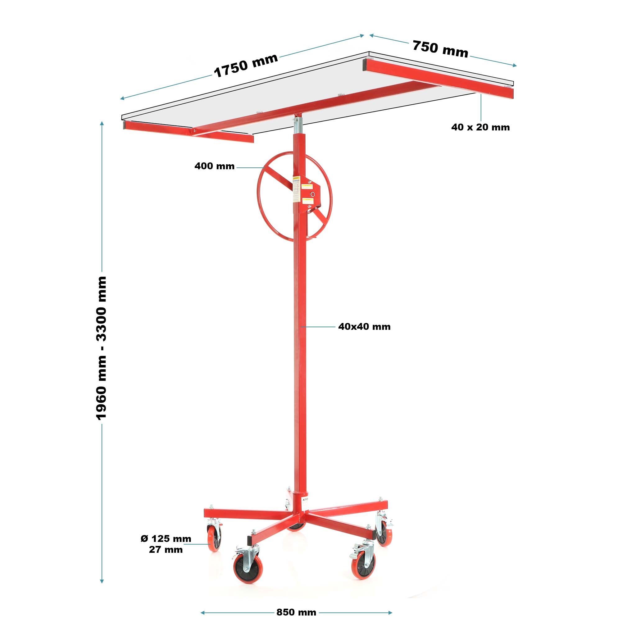 Wiltec Plattenheber 68kg 196-330cm Montagehilfe Paneelheber Trockenbau Lift