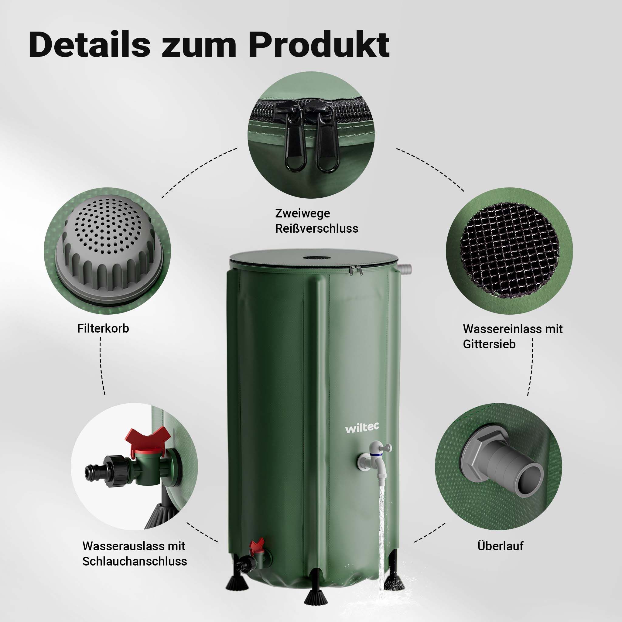 Wiltec Regentonne faltbar 100l Regenwassertonne Wassertank Regenfass Wassertonne