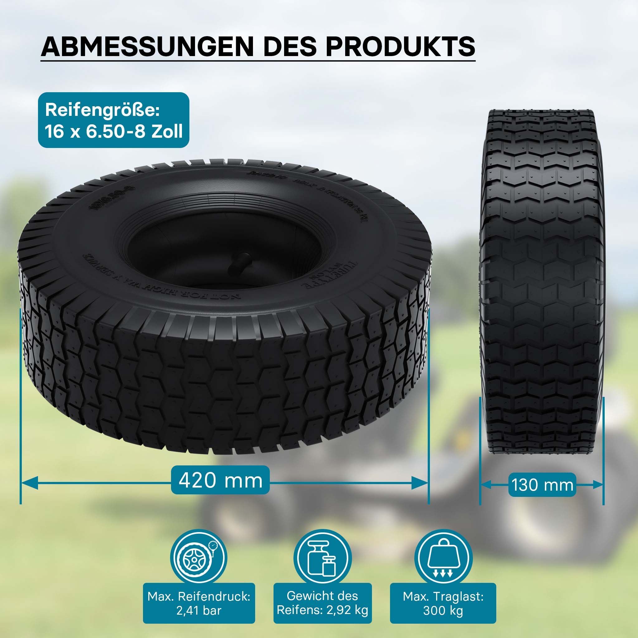 Wiltec Reifen für den Aufsitzmäher 16x6.50-8 4pr mit Schlauch und geradem Ventil