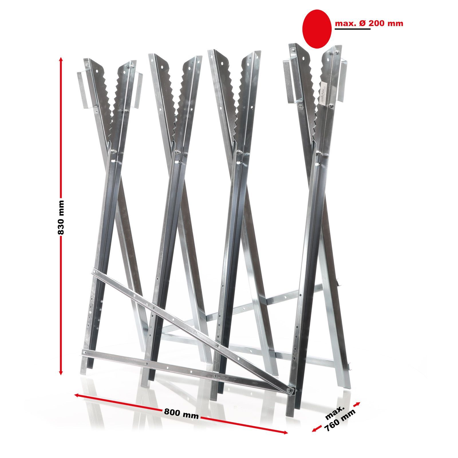 Wiltec Sägebock klappbar 4 Stammhalter verzinkt Holzsägebock Sägehilfe Zahnung