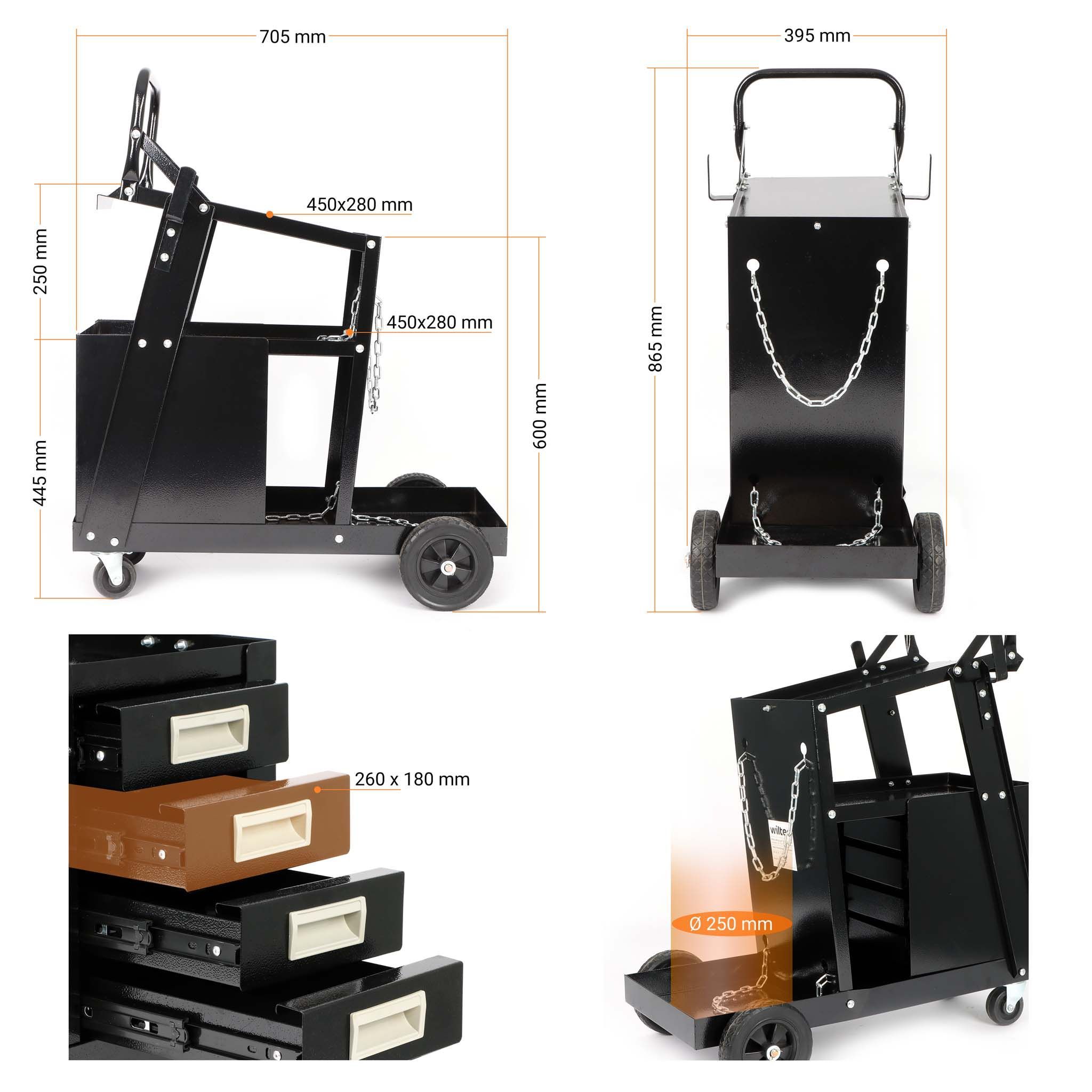 Wiltec Schweißwagen Stahl 4 Schubladen Schweißgerätewagen 100kg Werkstattwagen