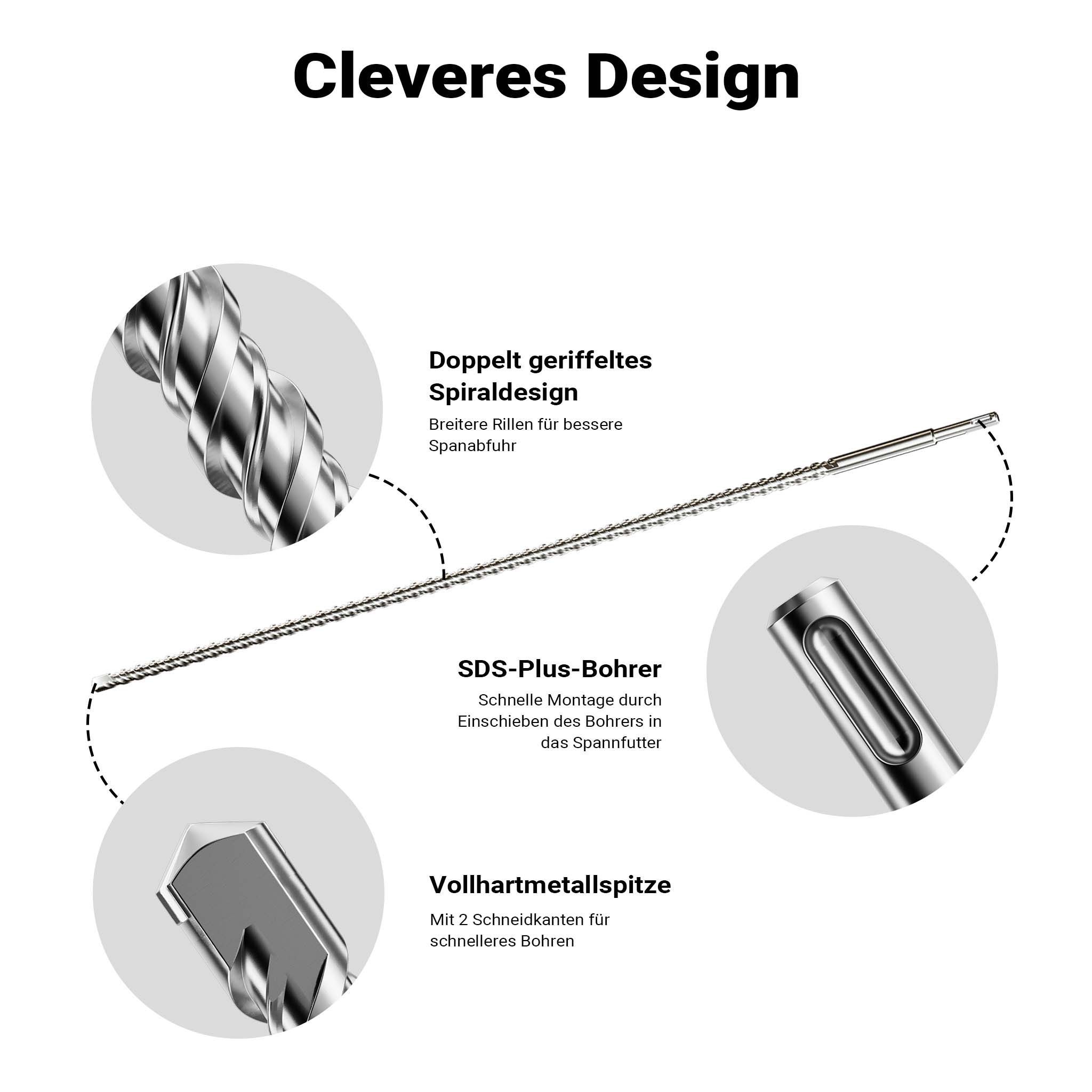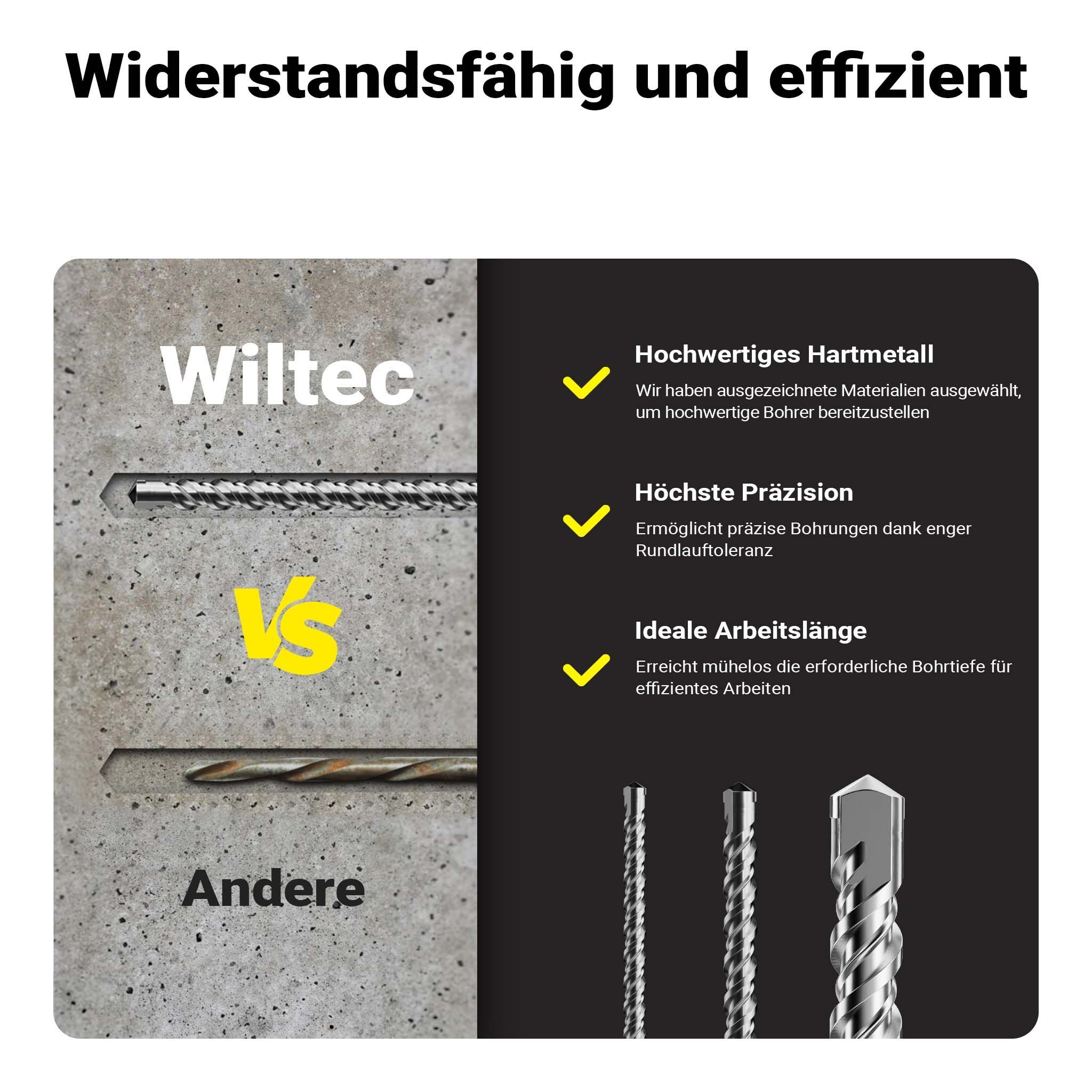 Wiltec SDS Bohrer 3tlg Ø12/16/24 mm 1000mm Länge Hammerbohrer Durchbruchbohrer
