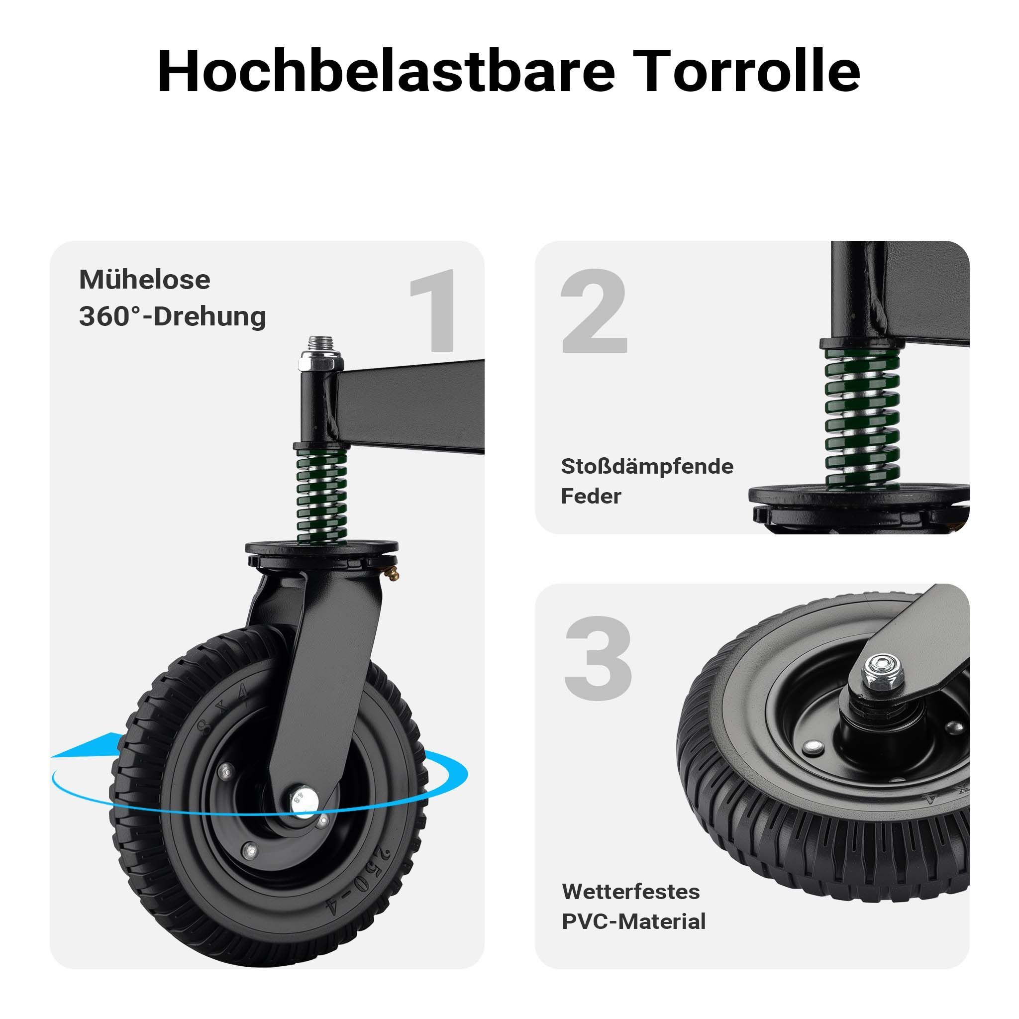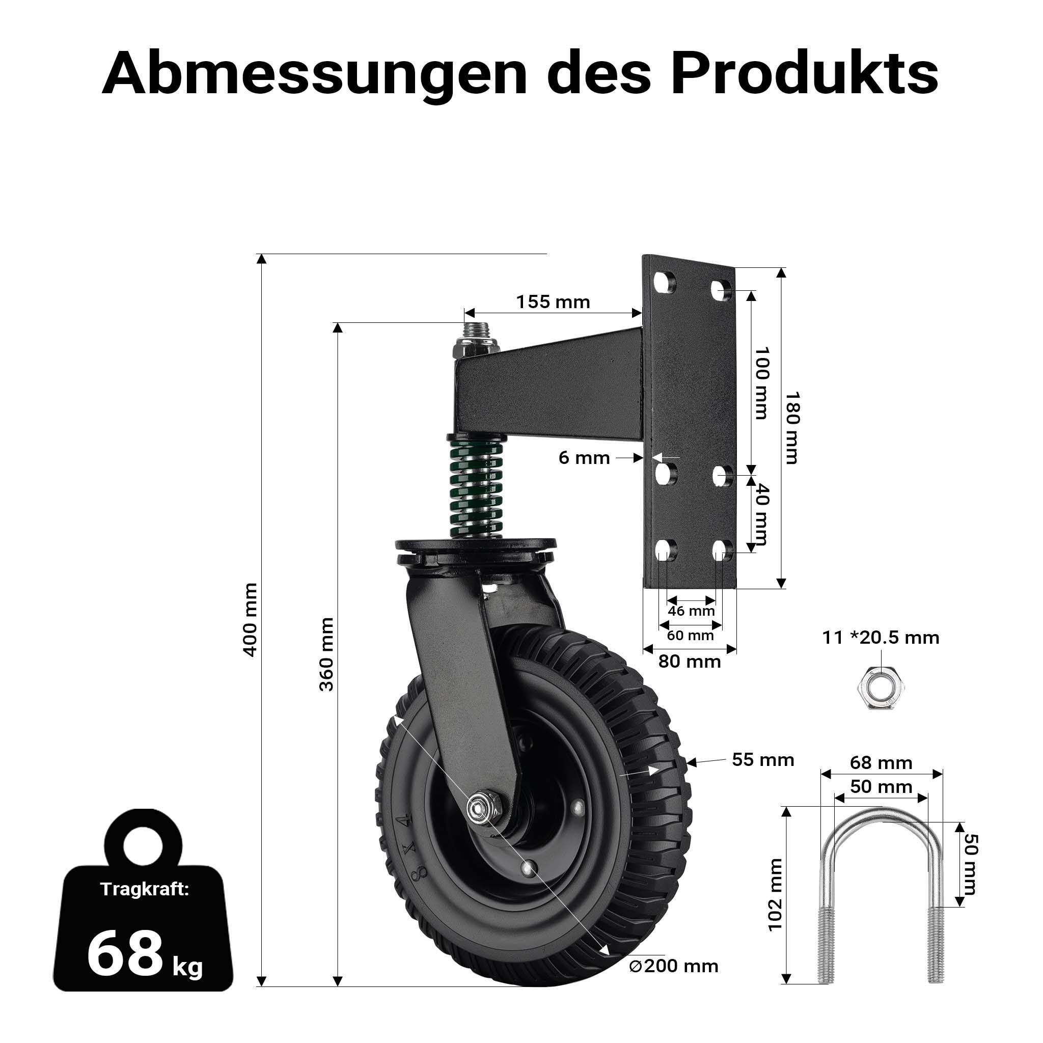 Wiltec Torrolle bis 275kg Schiebetorrolle 360° Gummirad Laufrolle Schiebetor