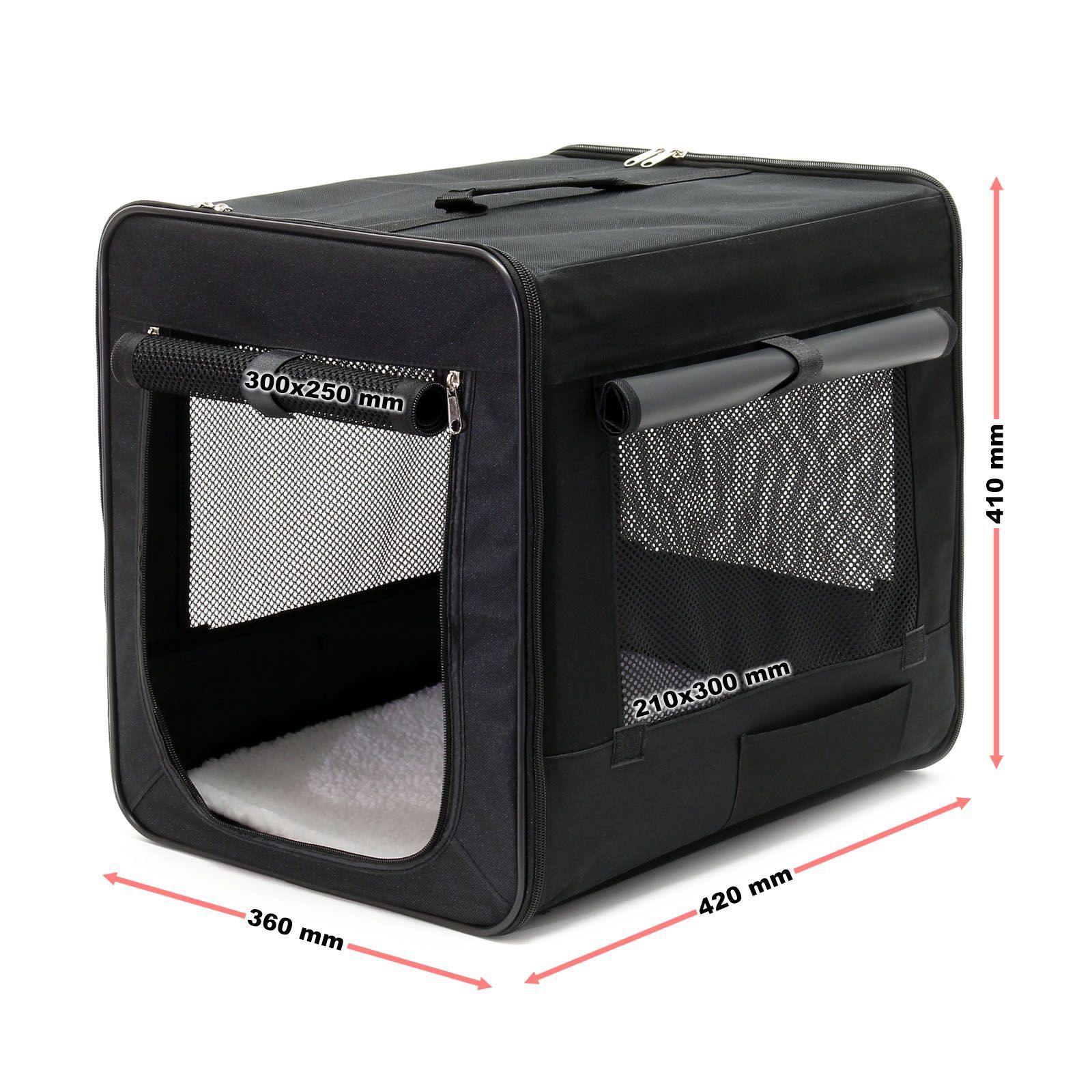 Wiltec Transportbox S Faltbar Schwarz 42x36x41cm Hundebox Katzenbox Reisebox