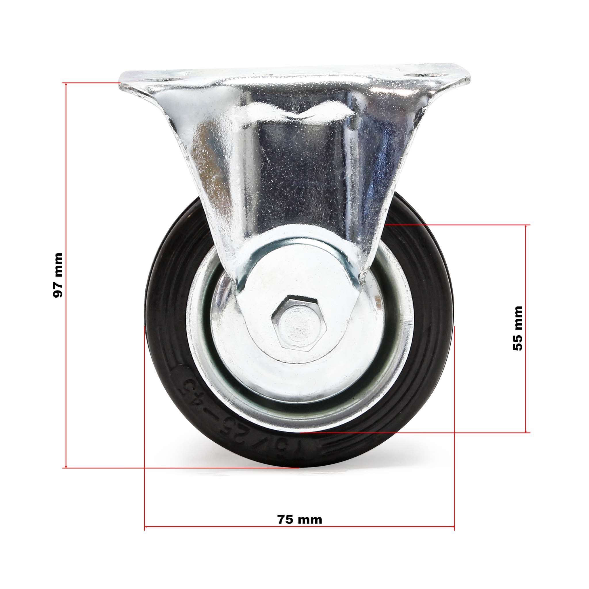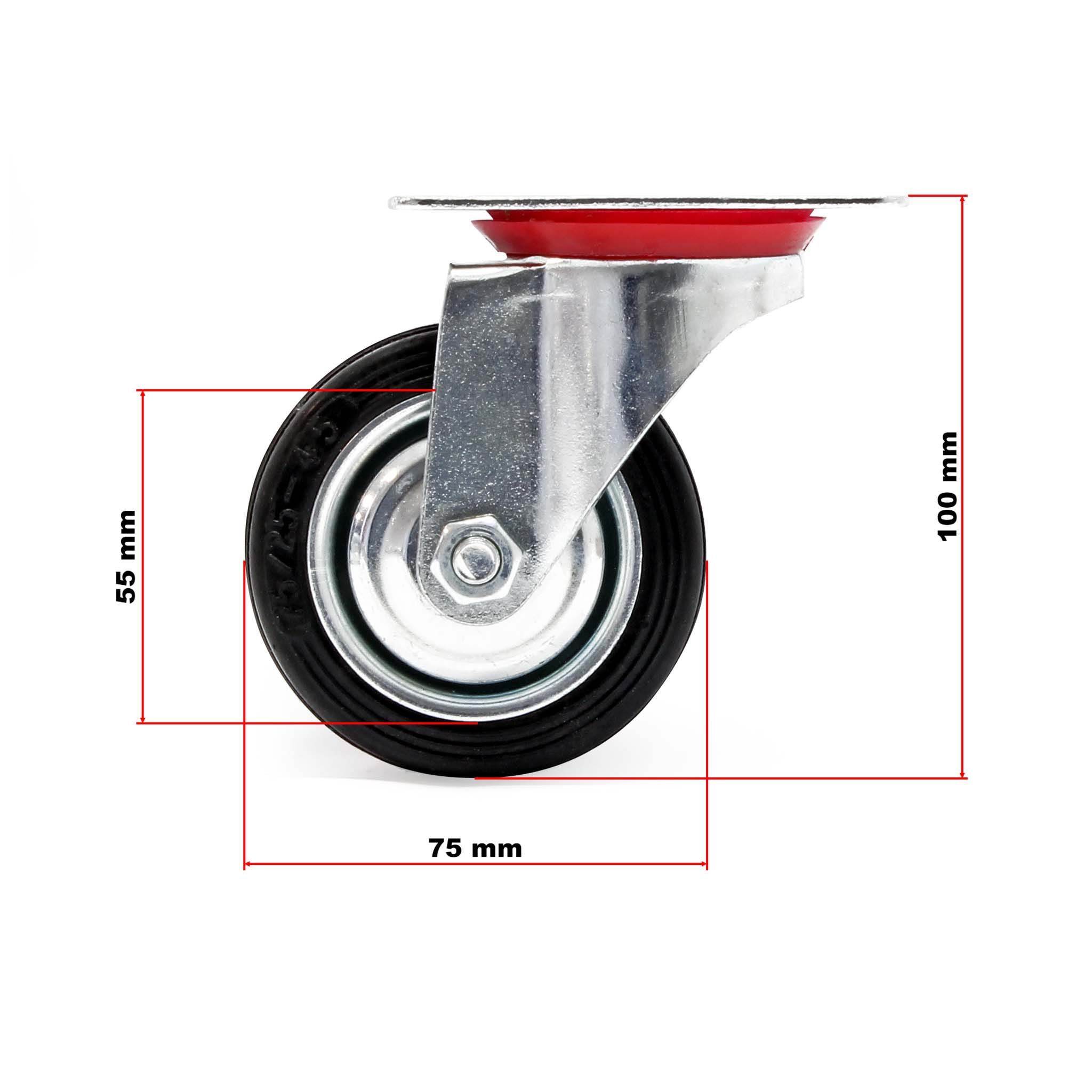 Wiltec Transportrollen Set 75mm 75kg 2x Lenkrolle ungebremst 2x Bockrolle