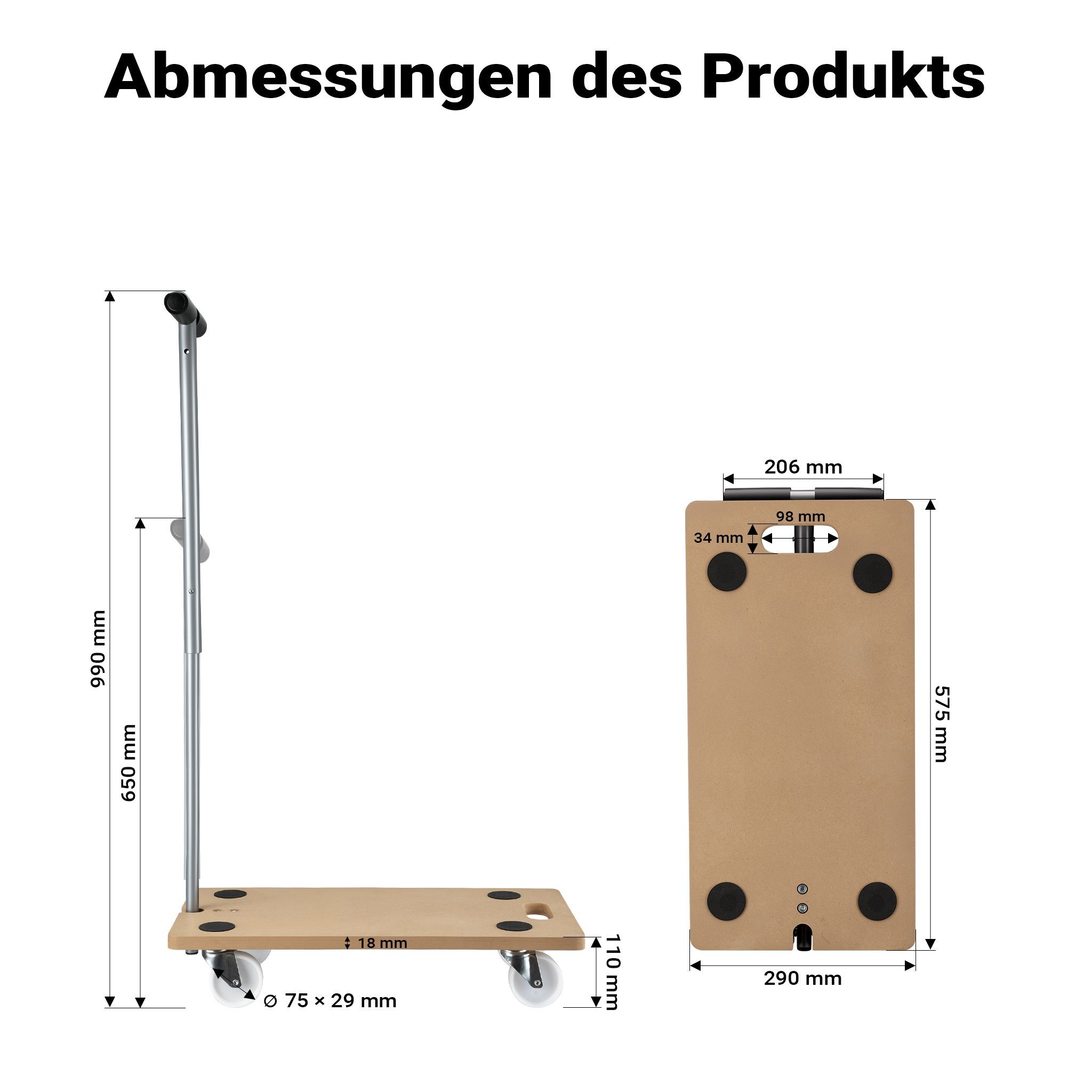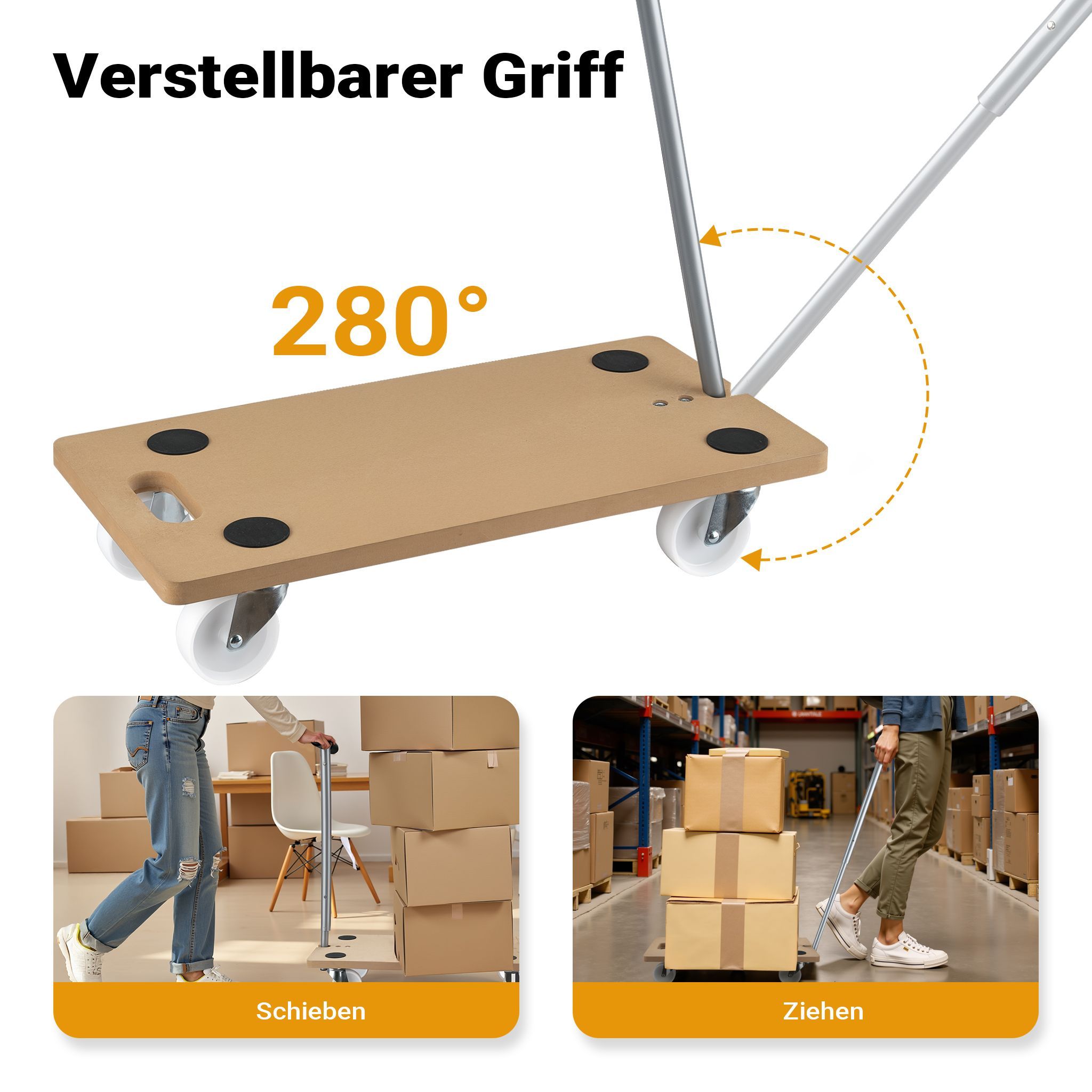 Wiltec Transportroller 575 x 290 x 650 mm 200kg Möbelroller Rollbrett Umzugshilfe