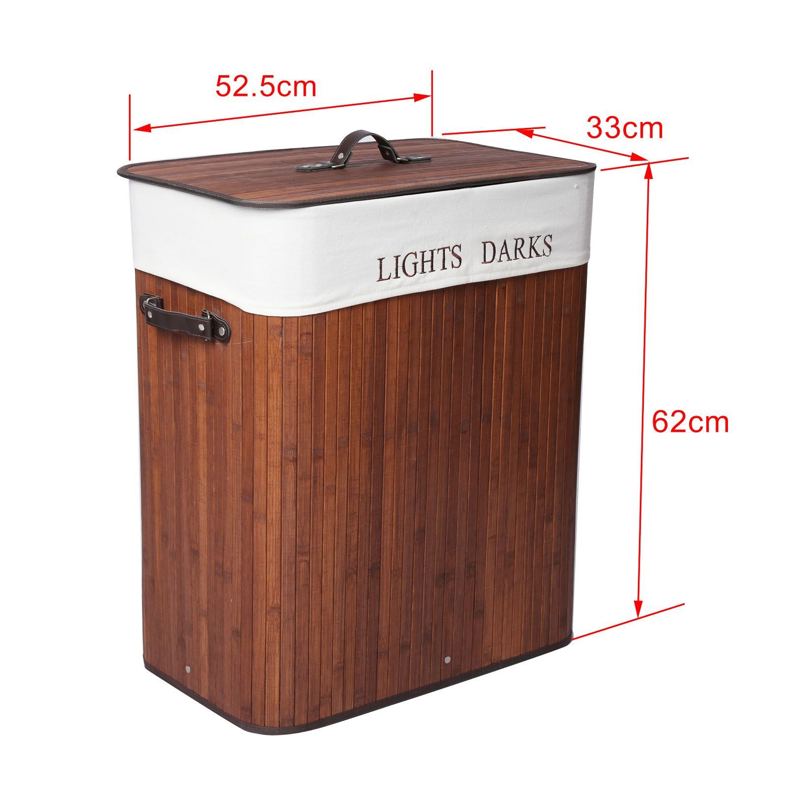 Wiltec Wäschebox 105L Bambus braun faltbar Wäschekorb 2 Fächer Deckel Leinensack