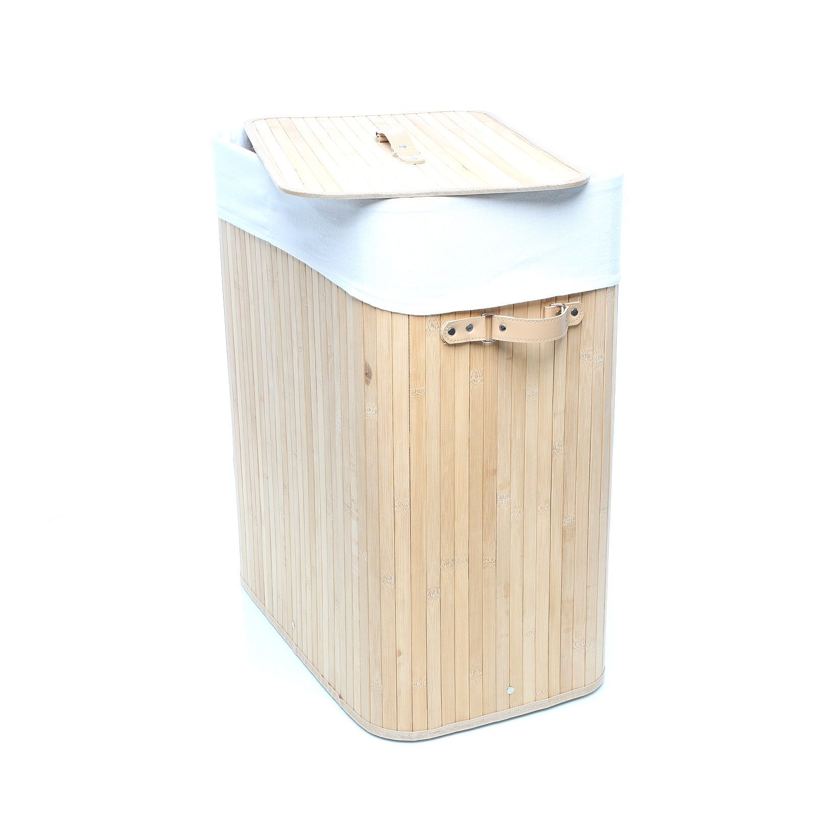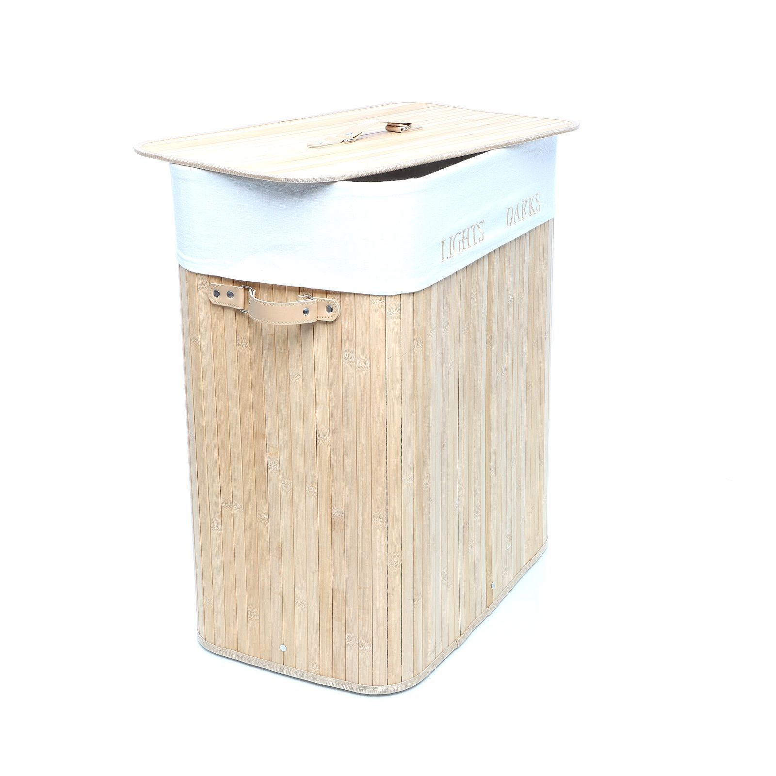 Wiltec Wäschebox 105L Bambus natur faltbar Wäschekorb 2 Fächer Deckel Leinensack