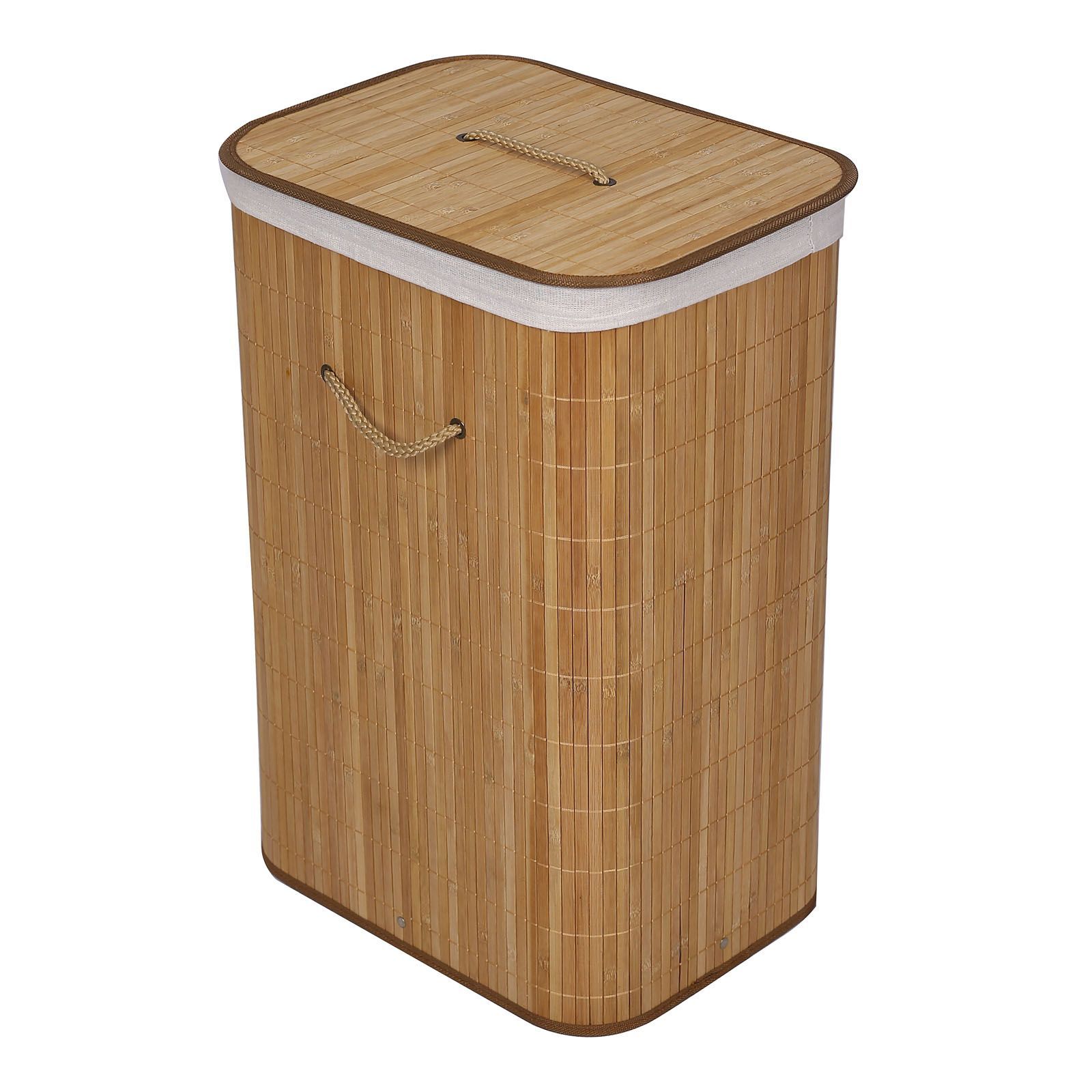 Wiltec Wäschebox 72L Bambus natur faltbar mit Deckel Wäschekorb rechteckig