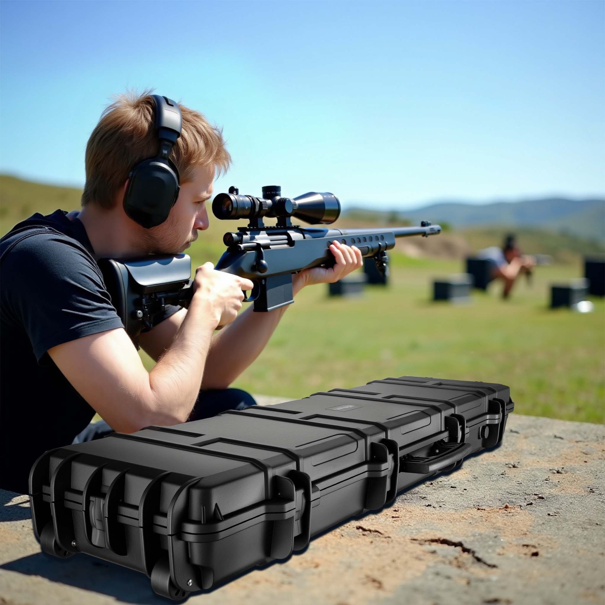 • Wiltec Waffenkoffer 101,8x50,3x19cm Langwaffenkoffer Gewehrkoffer TSA Schloss