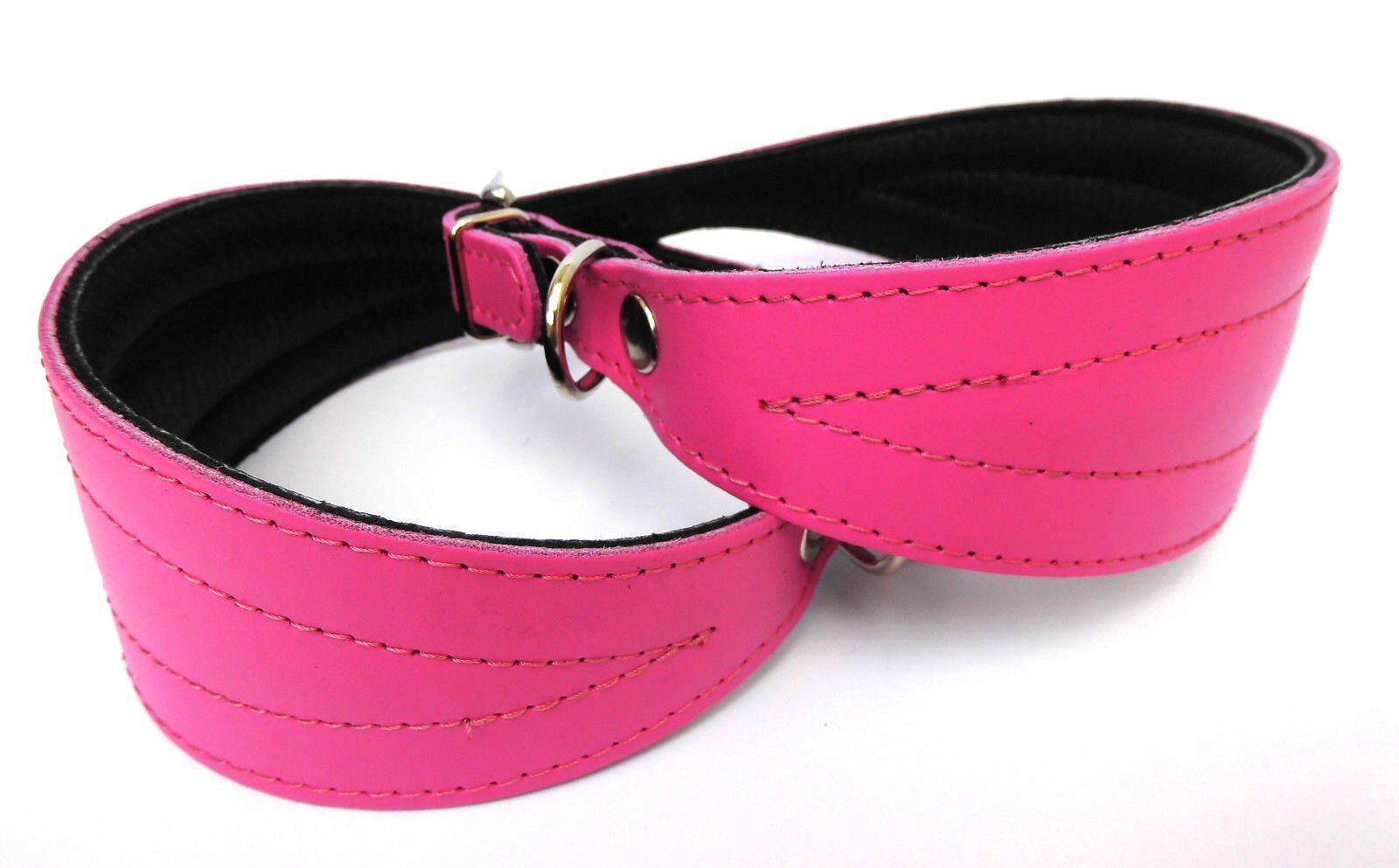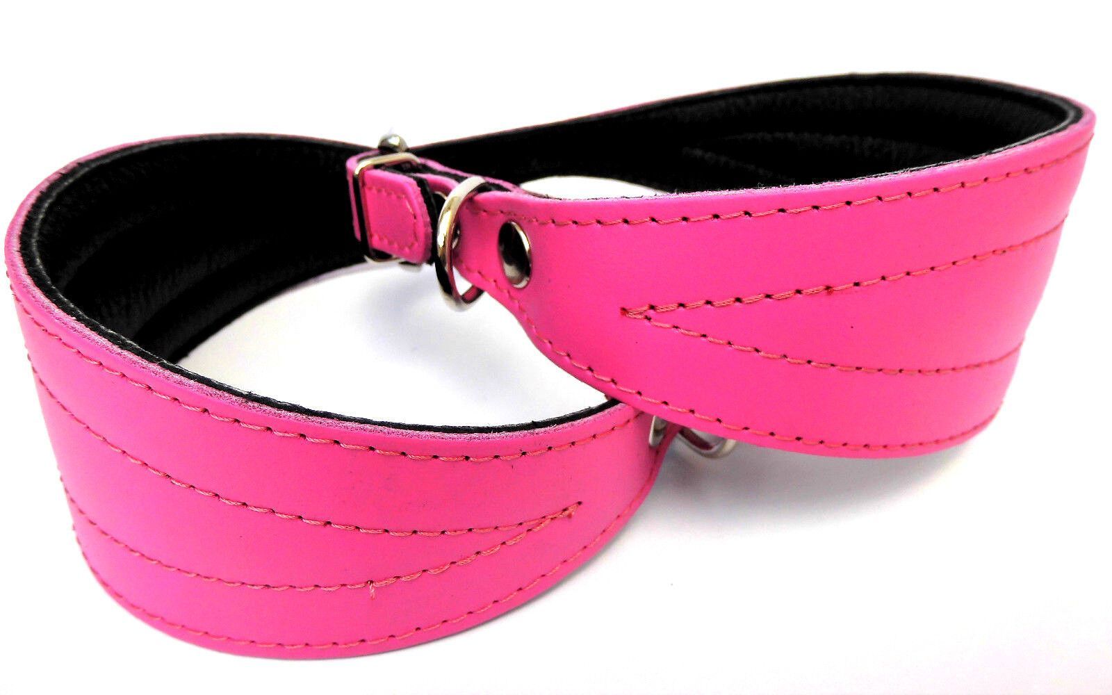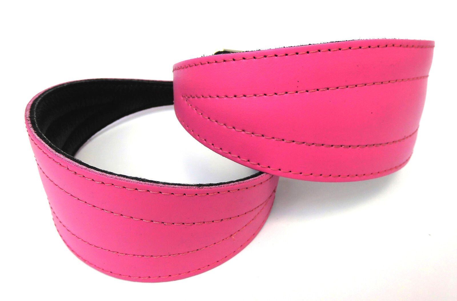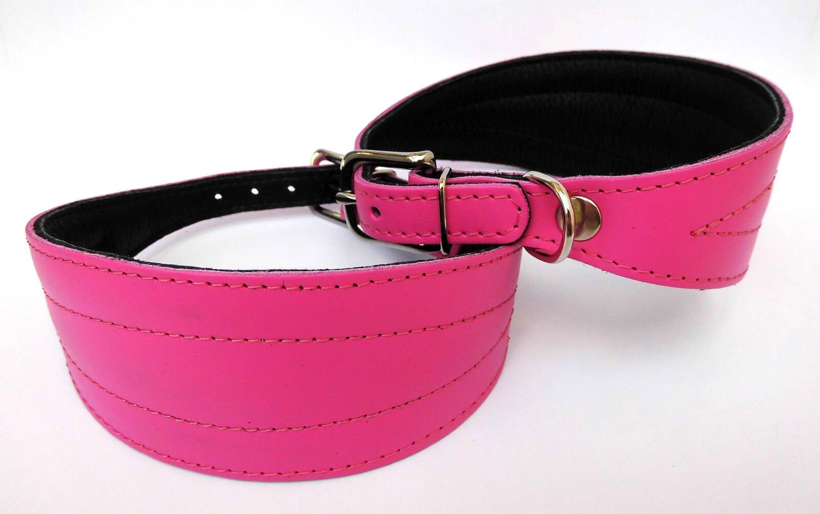 LEDERHALSBAND für Windhund *** ROSA *** Maße: Gesamtlänge : 40 cm Halsumfang : 33 - 38 cm Breit : 15 - 57 mm Messen Sie hierzu bitte den Hals ihres Hundes. Material - 100% hochwertiges Leder, sehr robust - Vernäht und gepolstert mit weichem Leder Schauen Sie bitte auch noch weiteren interessanten Ar