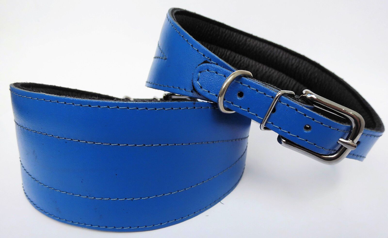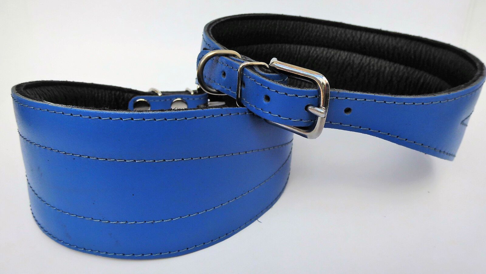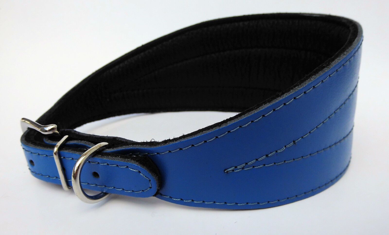 LEDERHALSBAND für Windhund *** BLAU *** Maße: Gesamtlänge : 45 cm Halsumfang : 33 - 41 cm Breit : 19 - 57 mm Messen Sie hierzu bitte den Hals ihres Hundes. Material - 100% hochwertiges Leder, sehr robust - Vernäht und gepolstert mit weichem Leder Schauen Sie bitte auch noch weiteren interessanten Ar