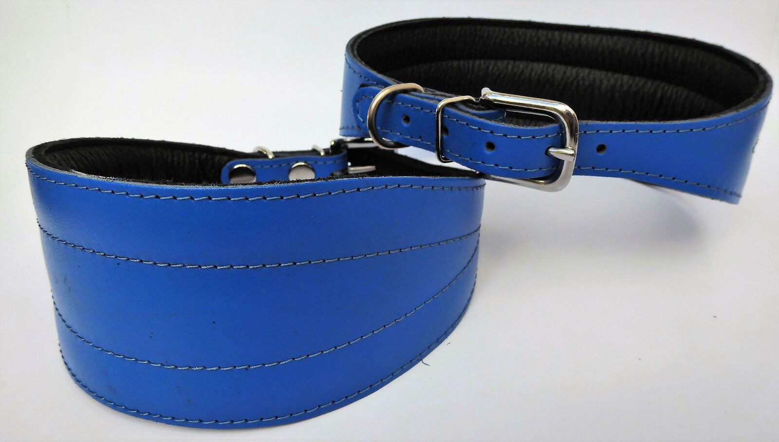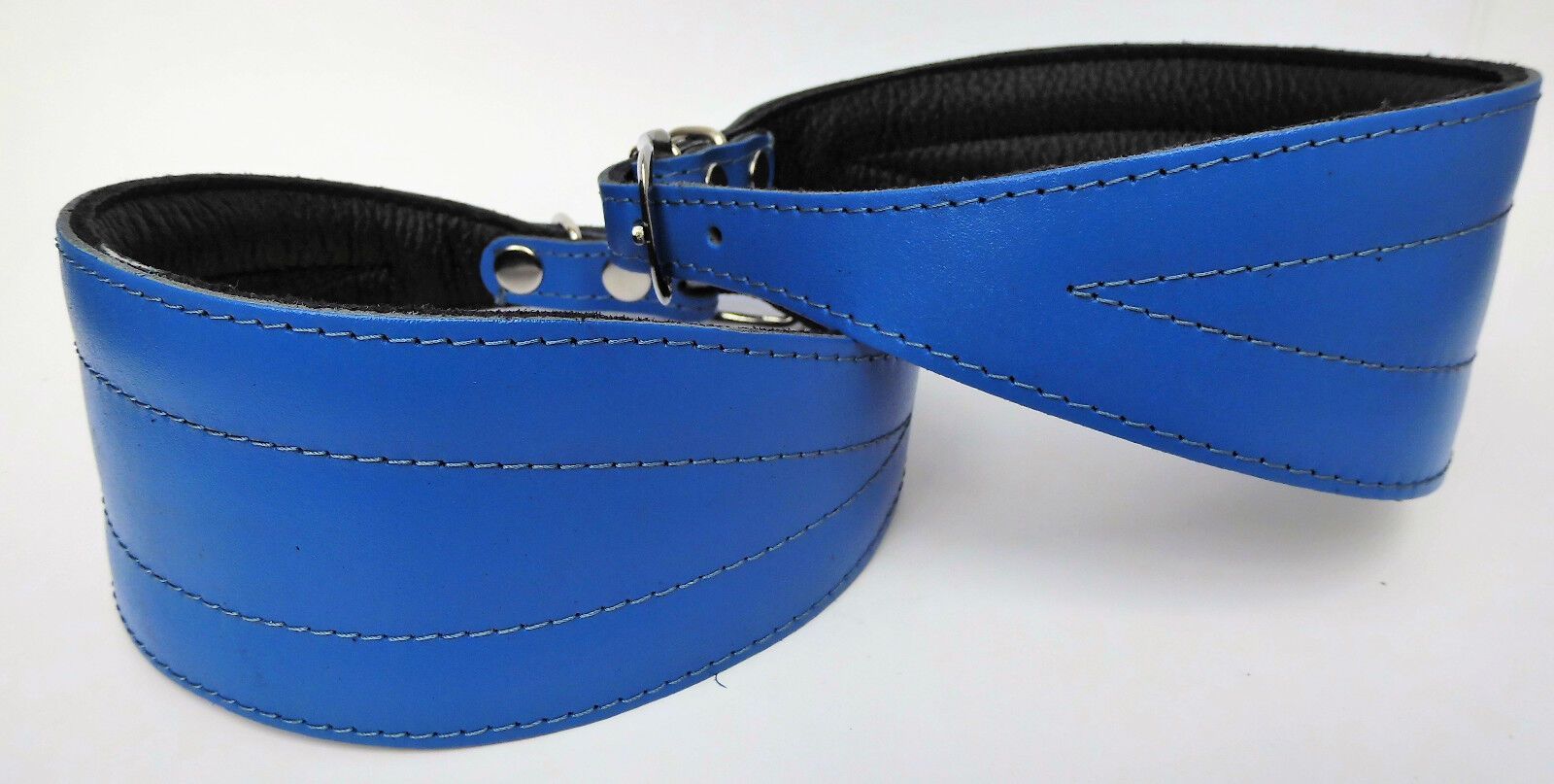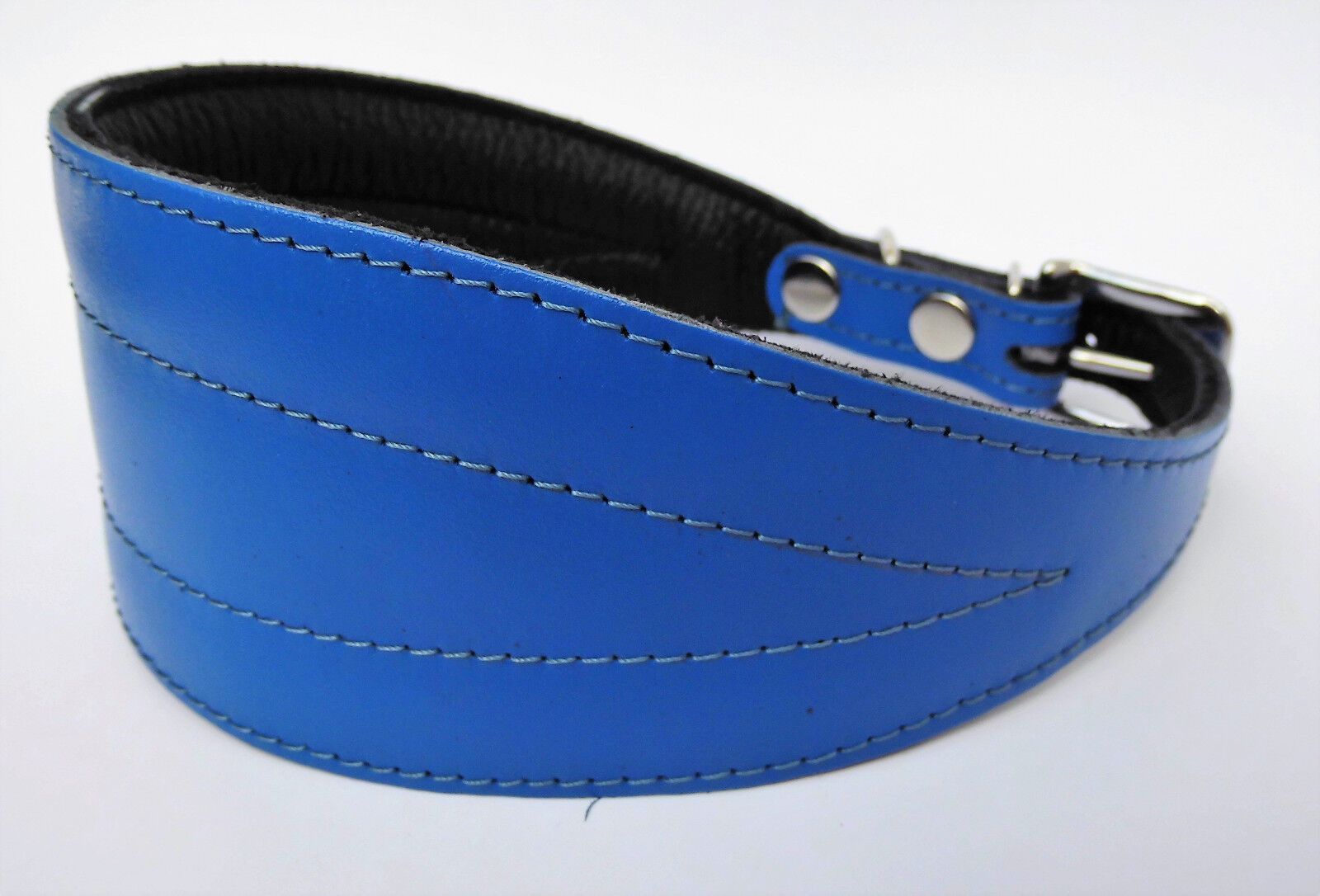 LEDERHALSBAND für Windhund *** BLAU *** Maße: Gesamtlänge : 45 cm Halsumfang : 33 - 41 cm Breit : 19 - 57 mm Messen Sie hierzu bitte den Hals ihres Hundes. Material - 100% hochwertiges Leder, sehr robust - Vernäht und gepolstert mit weichem Leder Schauen Sie bitte auch noch weiteren interessanten Ar