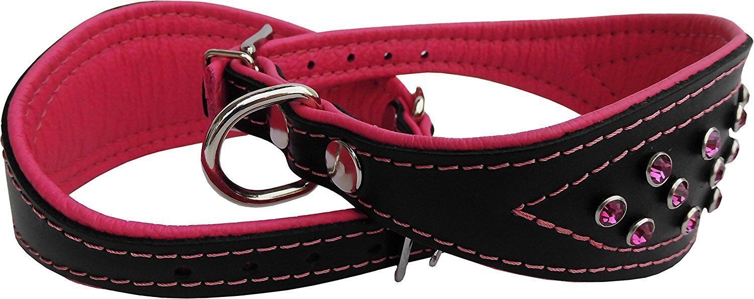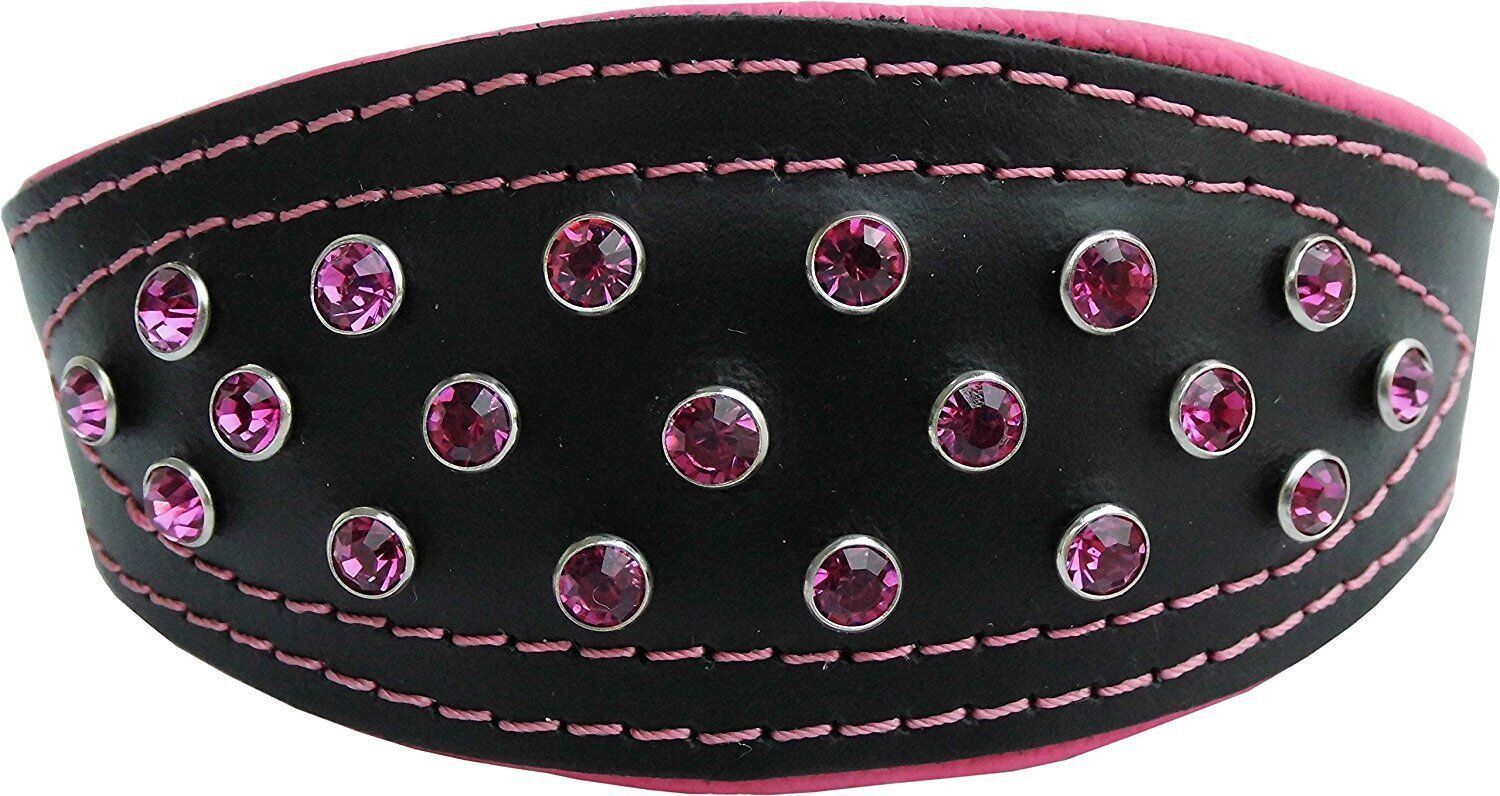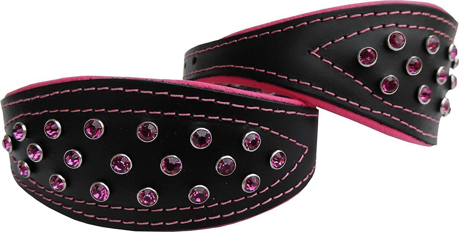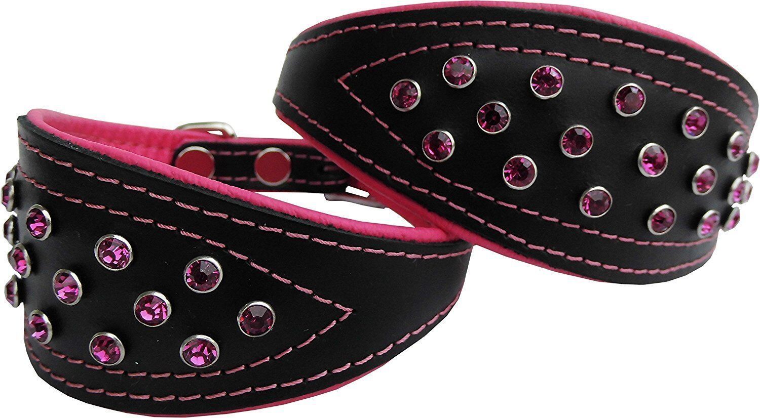 Windhund Halsband, Halsumfang 33-38cm/60mm, Leder + Kristalen ROSA